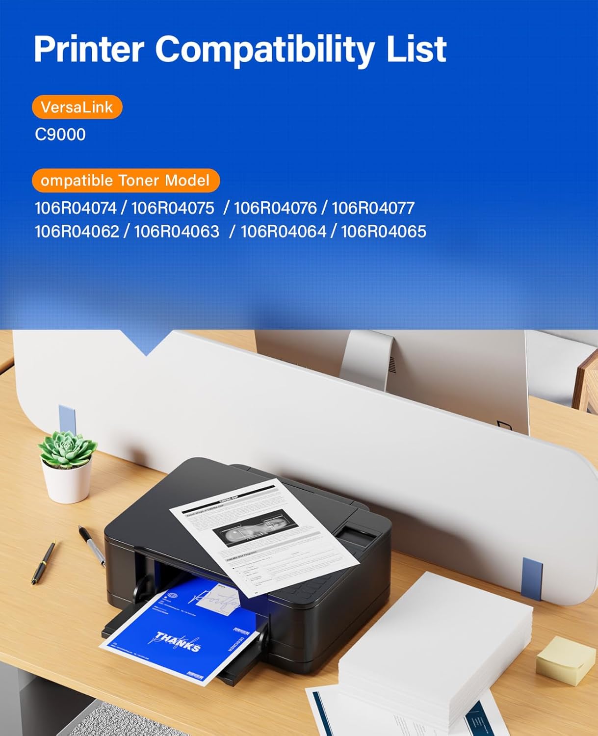 - Compatible Printer: Compatible for Xerox VersaLink C9000 Printer. Compatible Toner Model:106R04074,106R04075,106R04076,106R04077,106R04062,106R04063,106R04064,106R04065.