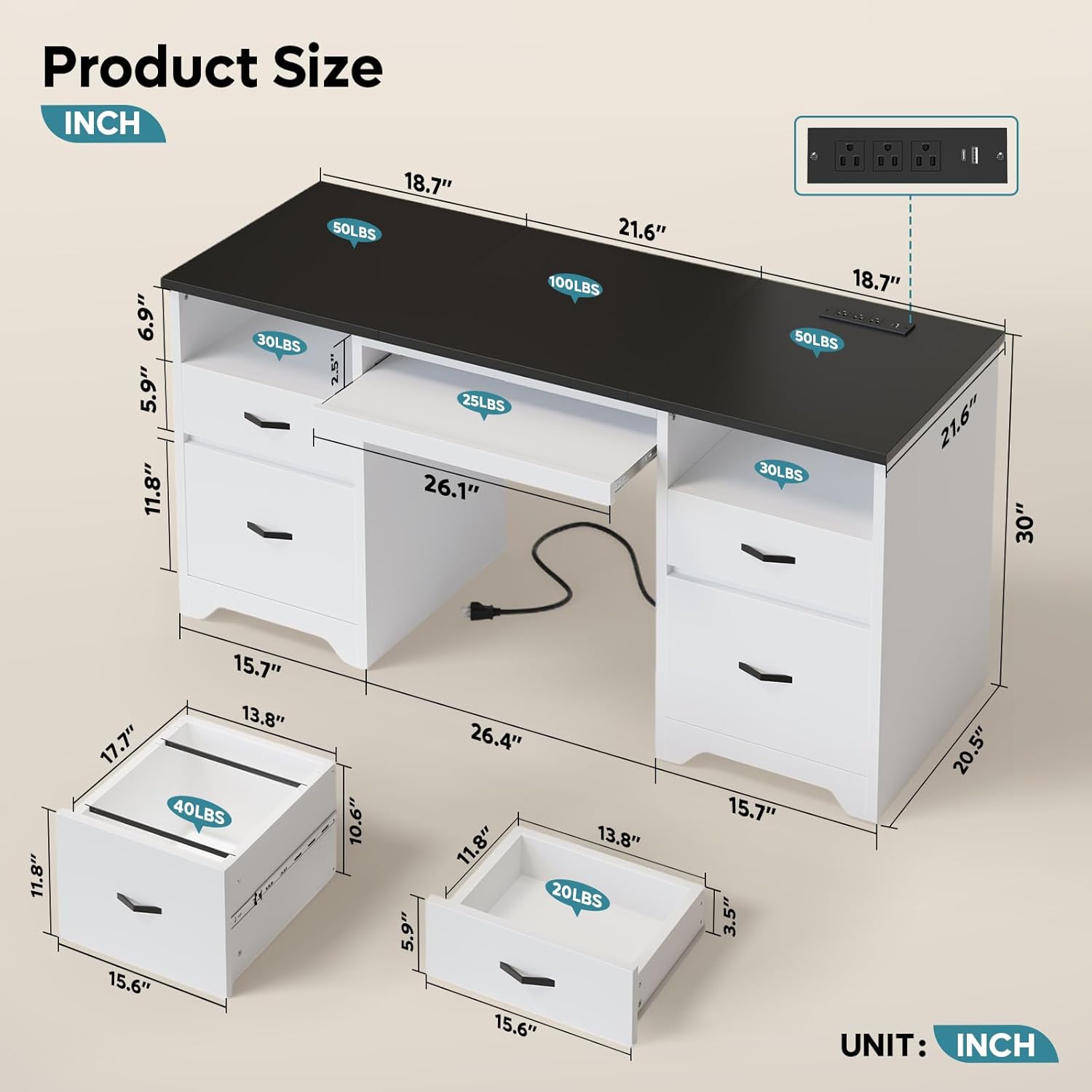 - Robust & Durable: Two reinforced pedestals provide solid stability, supporting up to 200 lbs on the desktop, 20 lbs in the storage drawers, and 40 lbs in the file drawers. Whether you mount dual monitors, park a heavy printer, or stack binders, this studio desk table remains wobble-free