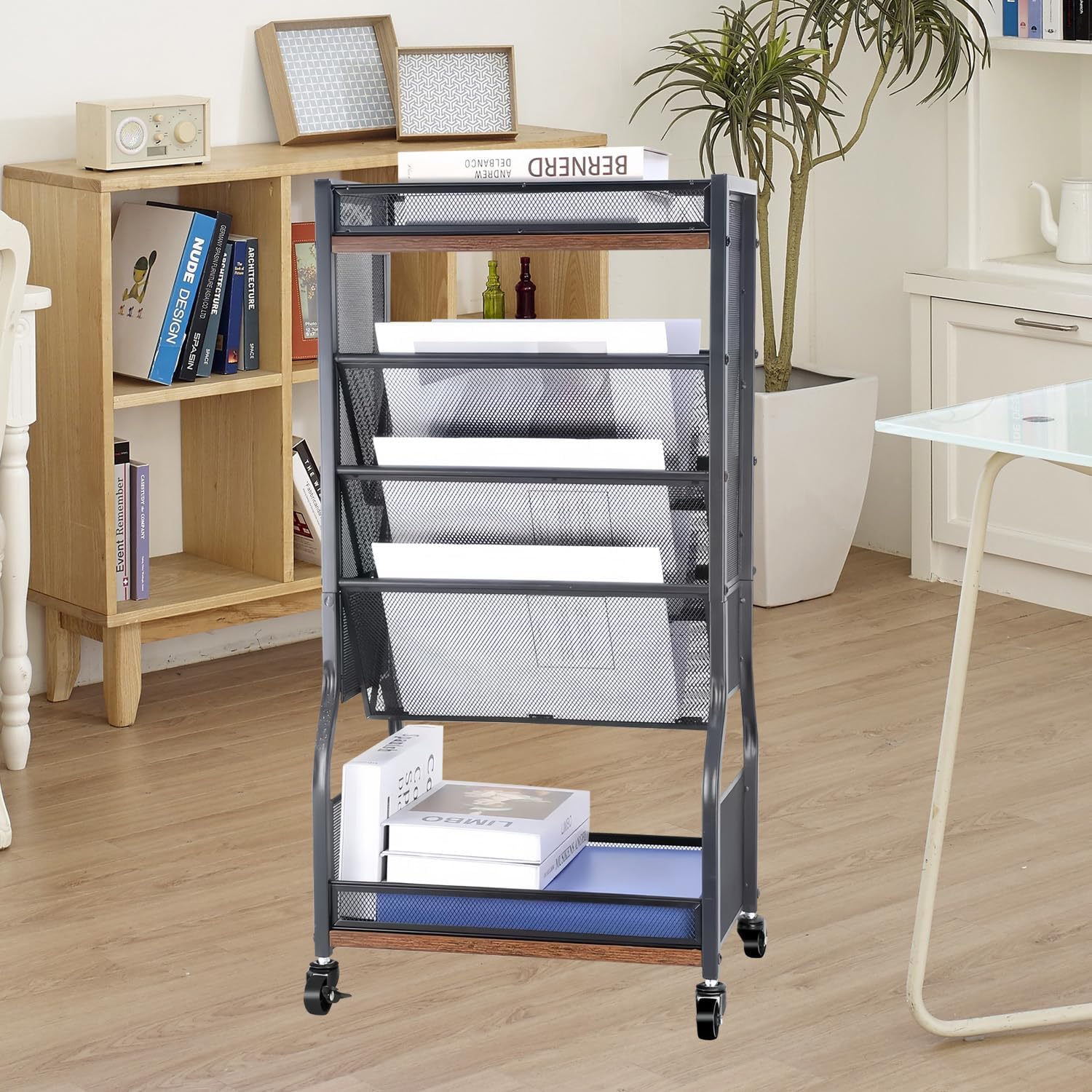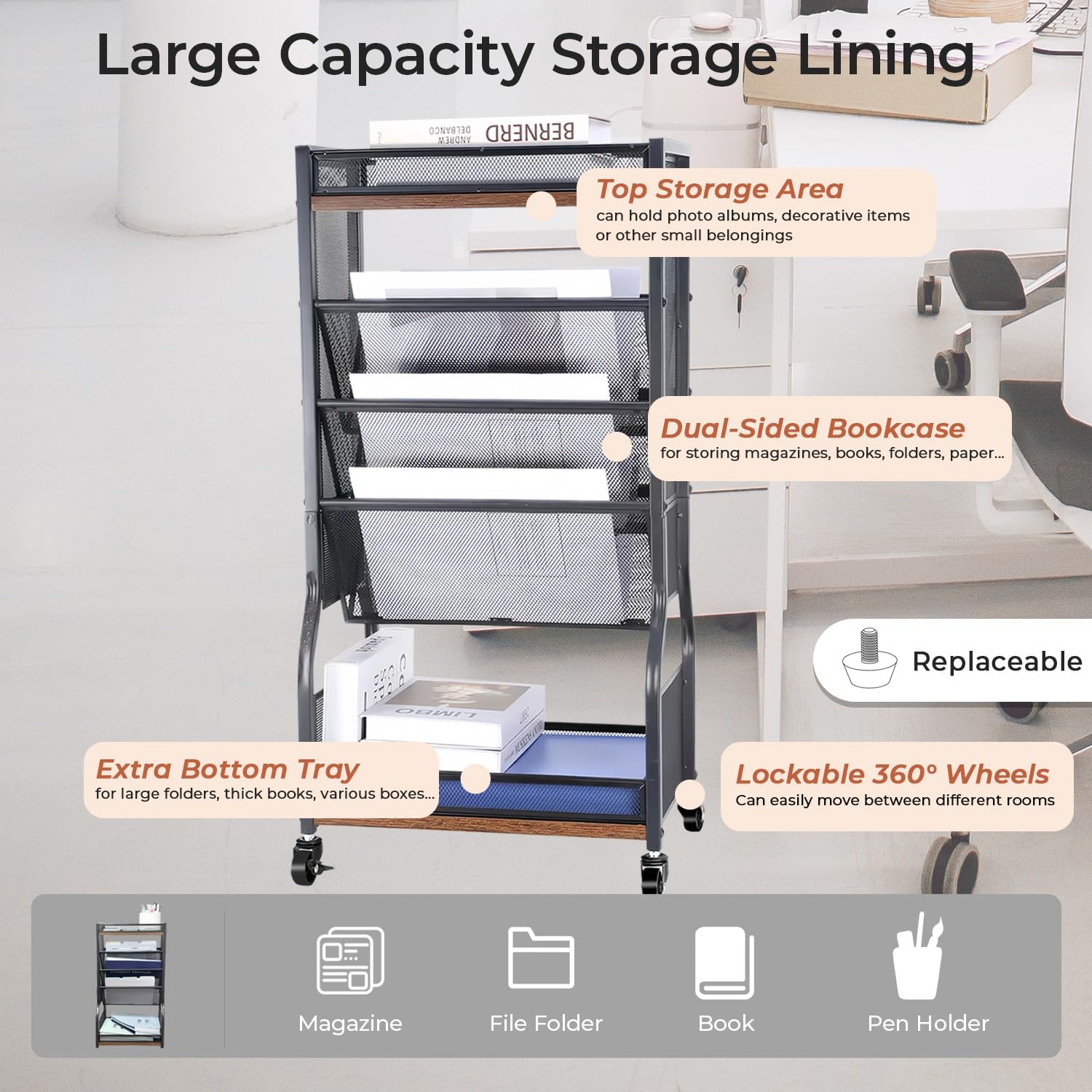 8-Tier Rolling File Cart with Lockable Wheels, Dual-Sided Bookshelf and Storage Racks, Easy to Assemble Space-Saving Utility Organizer for Home, Office, Classroom, School, or Living Room