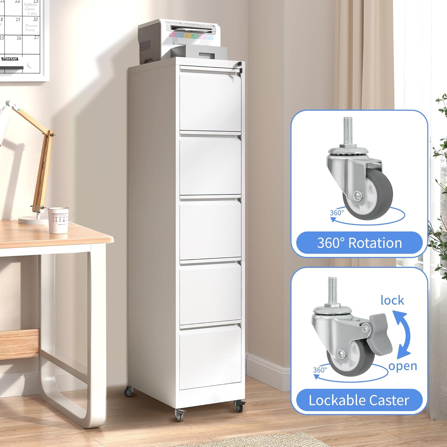 5 Drawer Mobile File Cabinet, Filing Cabinet Home Office for Letter, Legal Size, White