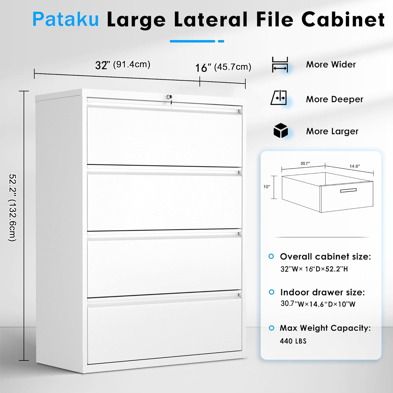 - â· ăDurable Metal ïŒ 440LBS Load BearingăPataku black file cabinet with thick cold-rolled high-strength solid all-steel materials and powder coating structure, make the cabinet away from rust and damage, more durable than wood file cabinet. 4 drawer file cabinet with lock can carry up to 440 LBS, strong enough to put your printers scanners.