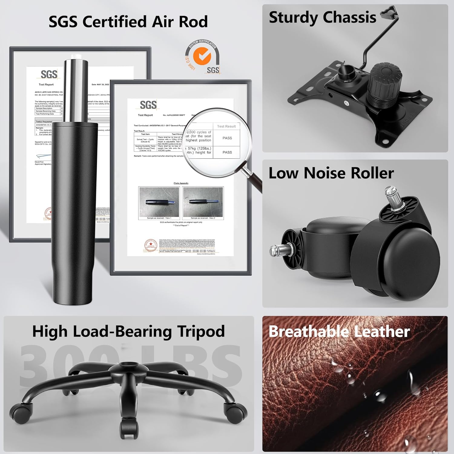 - Premium PU Leather:Crafted with high-quality PU leather that's easy to clean and built to last. This office desk chair features waterproof material with a smooth, breathable surface—perfect for your comfy office chair needs. Features high-density foam cushioning with natural leather grain for a premium executive look.