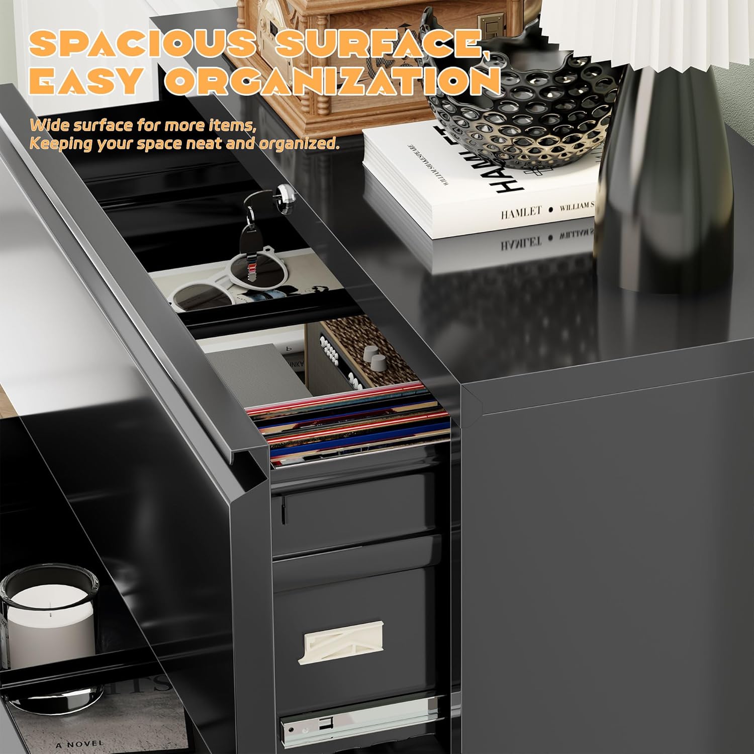 Superday Lateral File Cabinet 4 Drawer Metal File Cabinet with Lock, Black Filing Cabinets for Home Office, Locking Filing Cabinets Hanging Files Letter/Legal/F4/A4