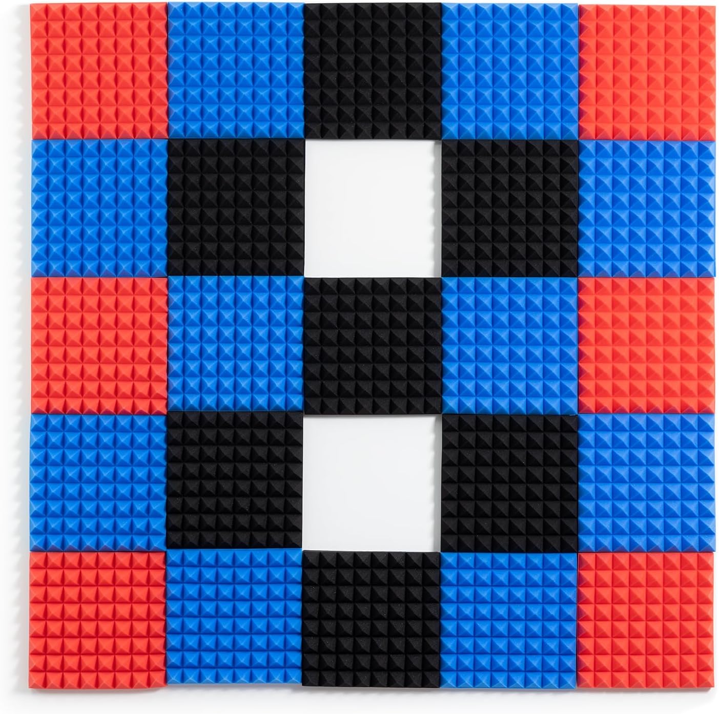 Sonicism Acoustic Panels Self-Adhesive Pyramid 12 Pack,12" X 12" X 1" Sound Proof Foam Panels for walls Fast Expand 35kg/mÂłHigh Density Soundproof Wall Panels,Sound Absorption & Decoration(Blue/Black)