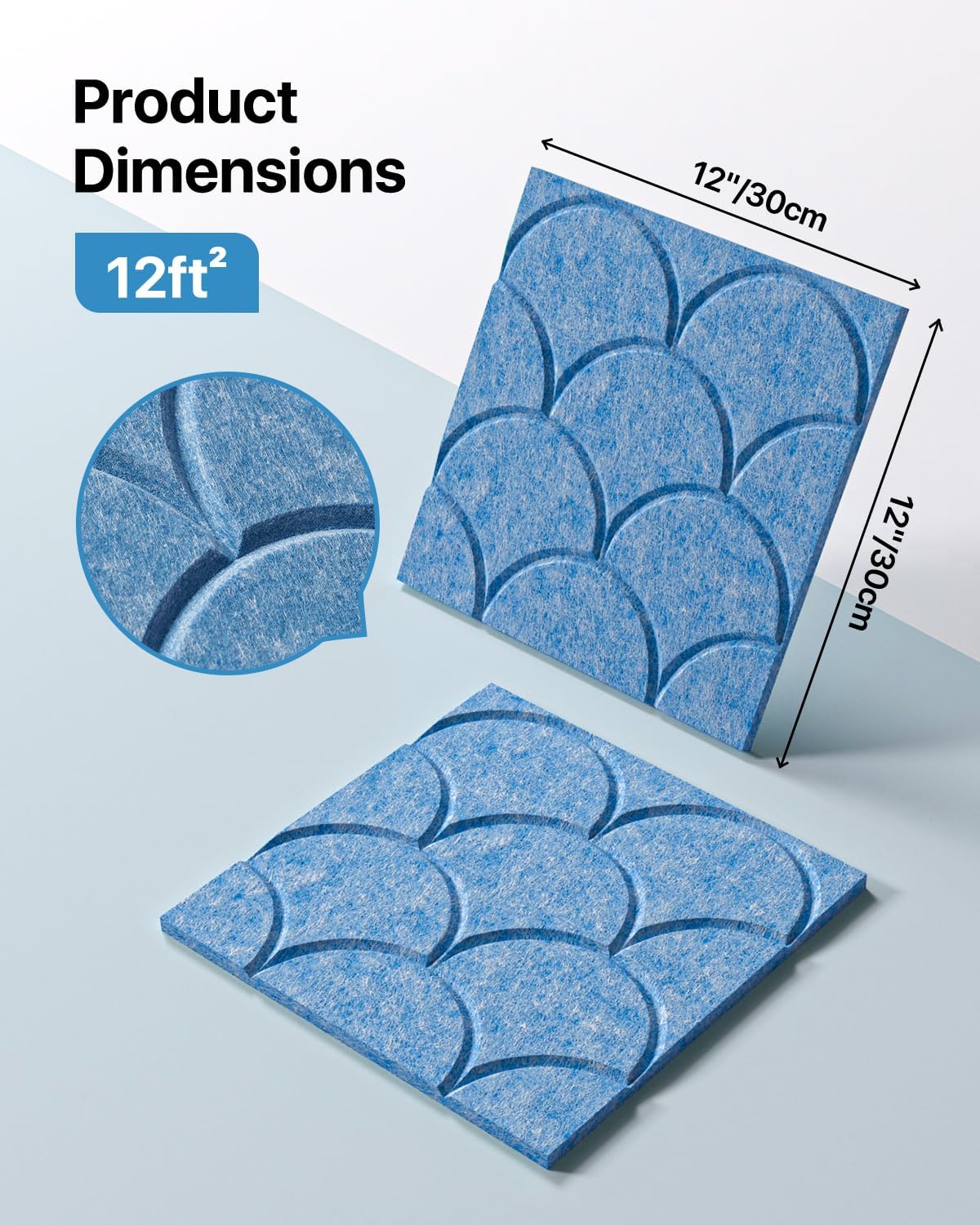 12-Pack Shell Acoustic Wall Panels Self-Adhesive, 10.6lb/ft³ High Density Sound Proof Foam Panels for Walls, 12" X 12" Soundproof Wall Panels for Door, Ceiling, Home Office, Sky Blue