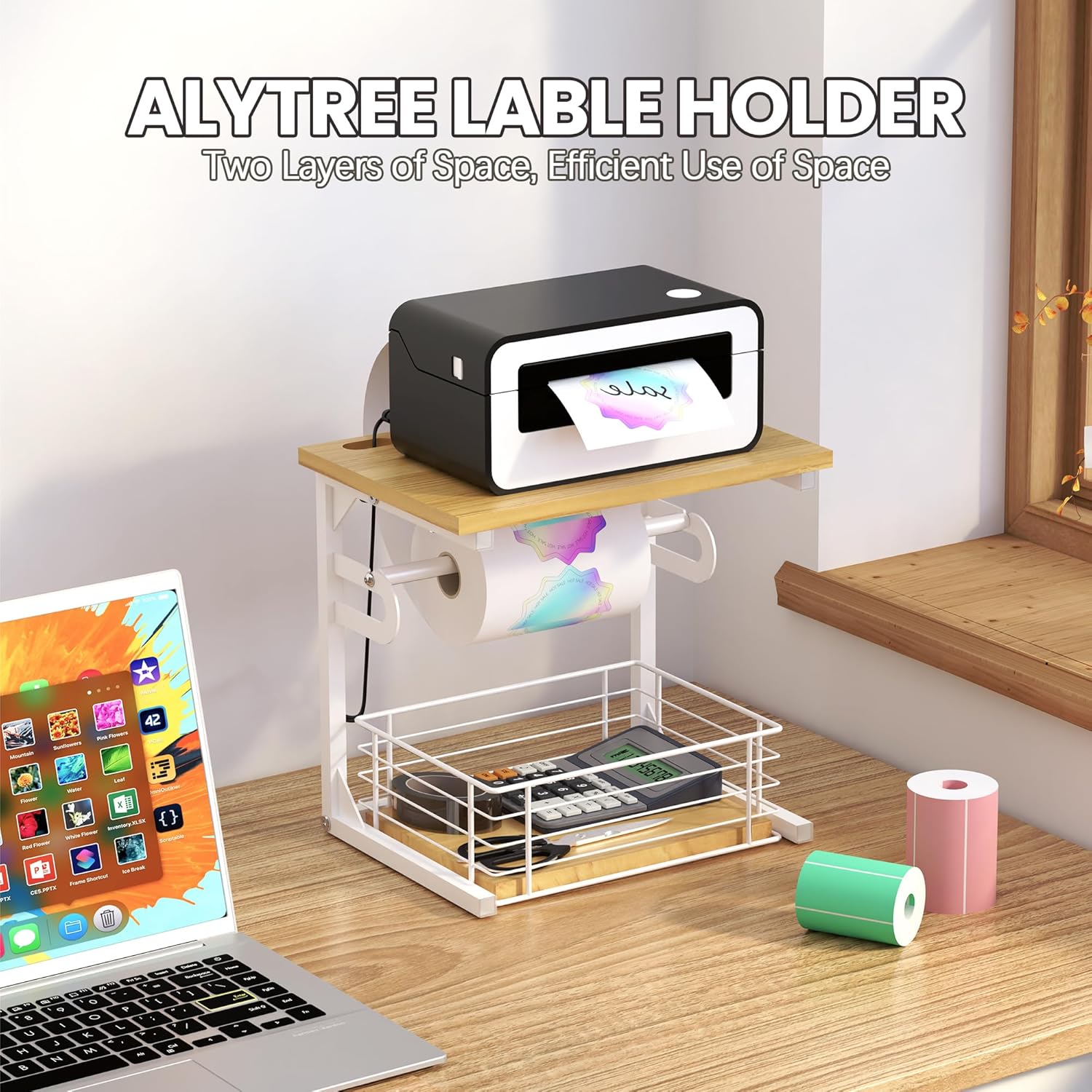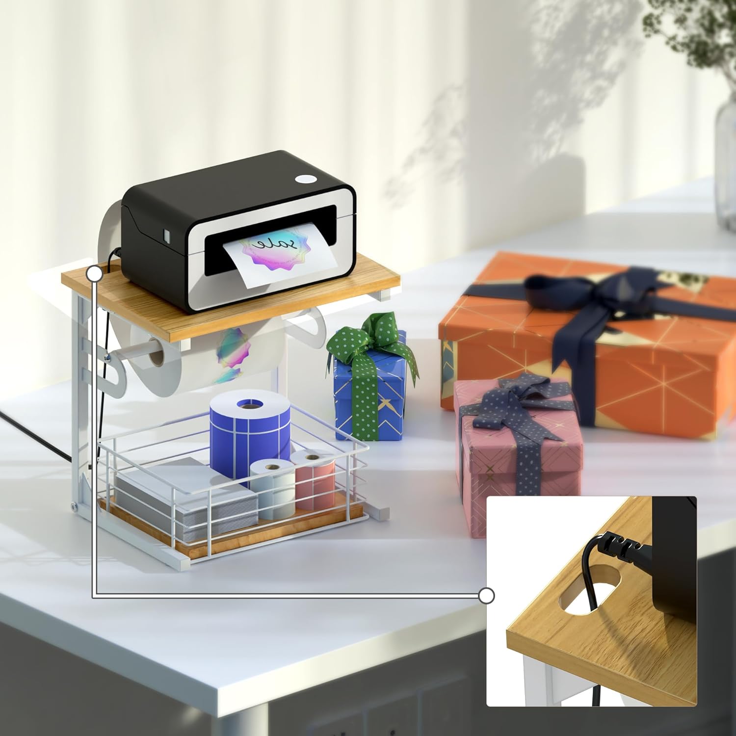 - 【ALL-IN-ONE Multifunctional Label Holders】 Designed specifically for the efficient storage of labels and printers, this holder features holes on both sides of the upper section to organize the printer’s power cable or other accessories. The bottom drawer offers additional storage space for office supplies, including tapes, labels, and other items.