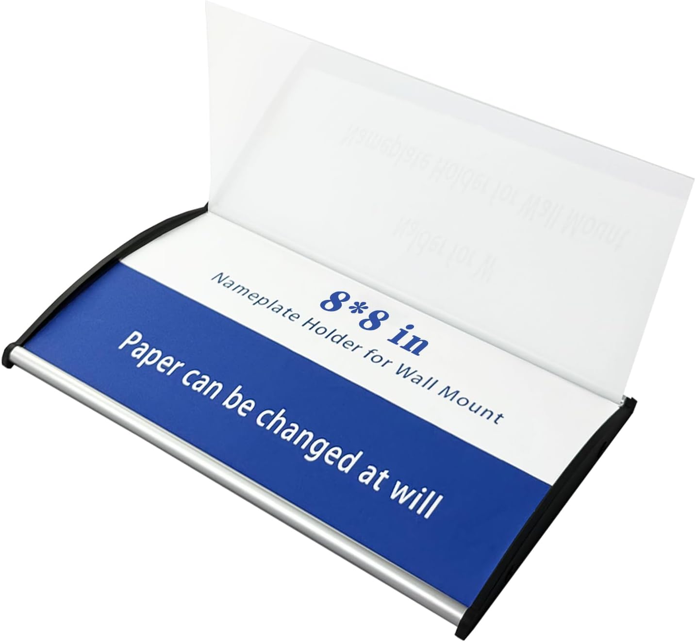 Curved Name Plate Holder 8" x 8" Wall Mount Office Business Door Sign Holder Aluminum Sturdy Office Sign Frame with Adhesive Tape Film for Business Cubicle Custom Display - Silver