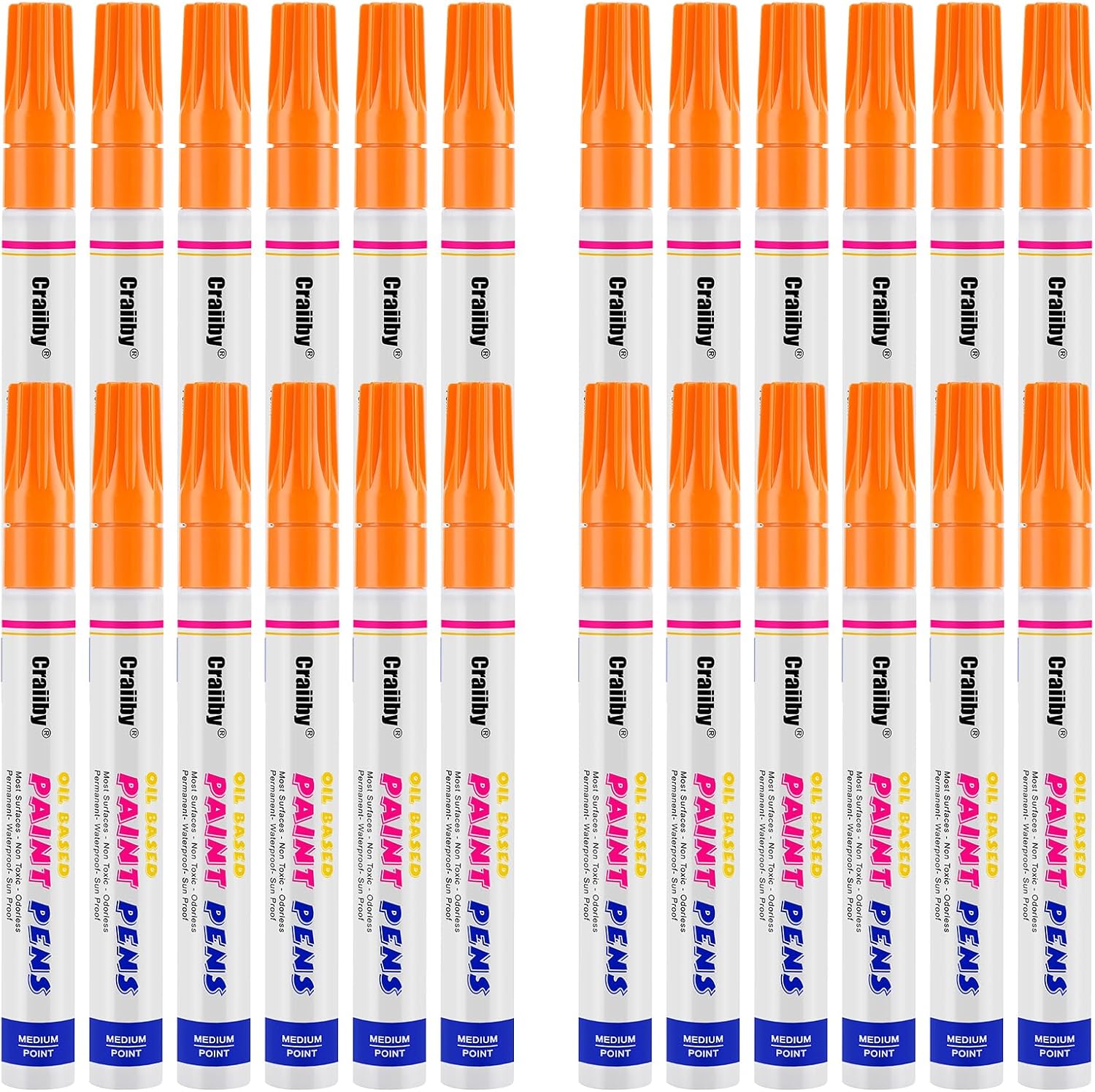 Orange Paint Markers, 24 Pack Oil-Based Waterproof Quick Dry Permanent Paint Pen Set for Rocks Painting, Wood, Fabric, Plastic, Canvas, Glass, Mugs, Metal, Tire, Stone, DIY Craft
