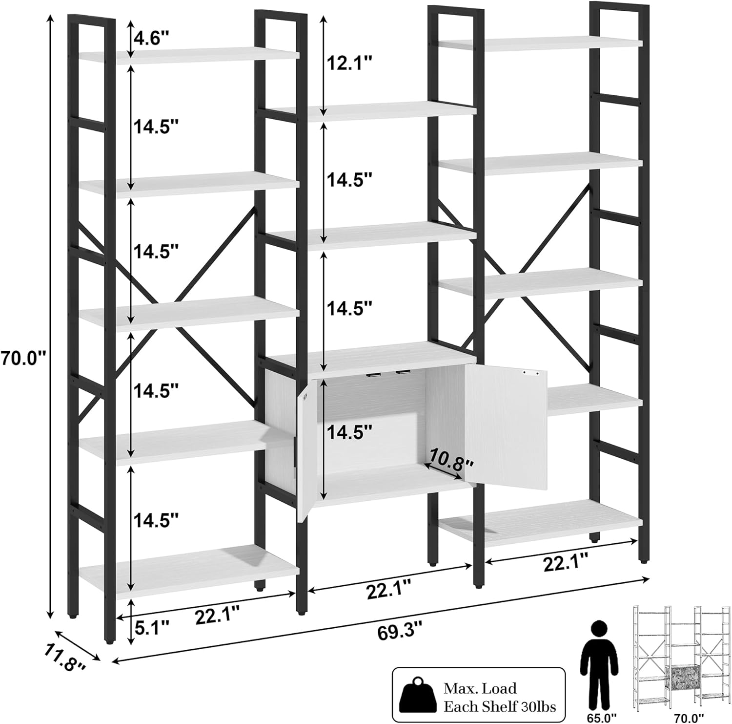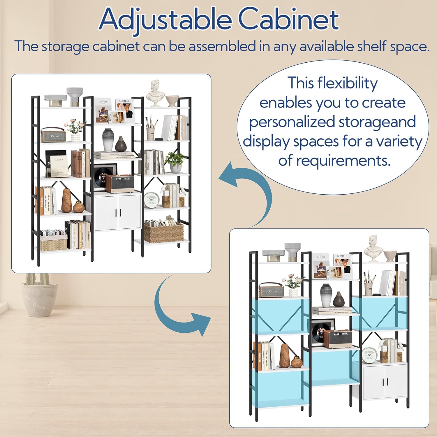 Yusong Bookshelf Triple Wide 5 Tier Bookcases with Storage Cabinet, Industrial Large Modern Tall Bookshelves with 12 Open Display Shelves for Living Room Office Bedroom, White and Black