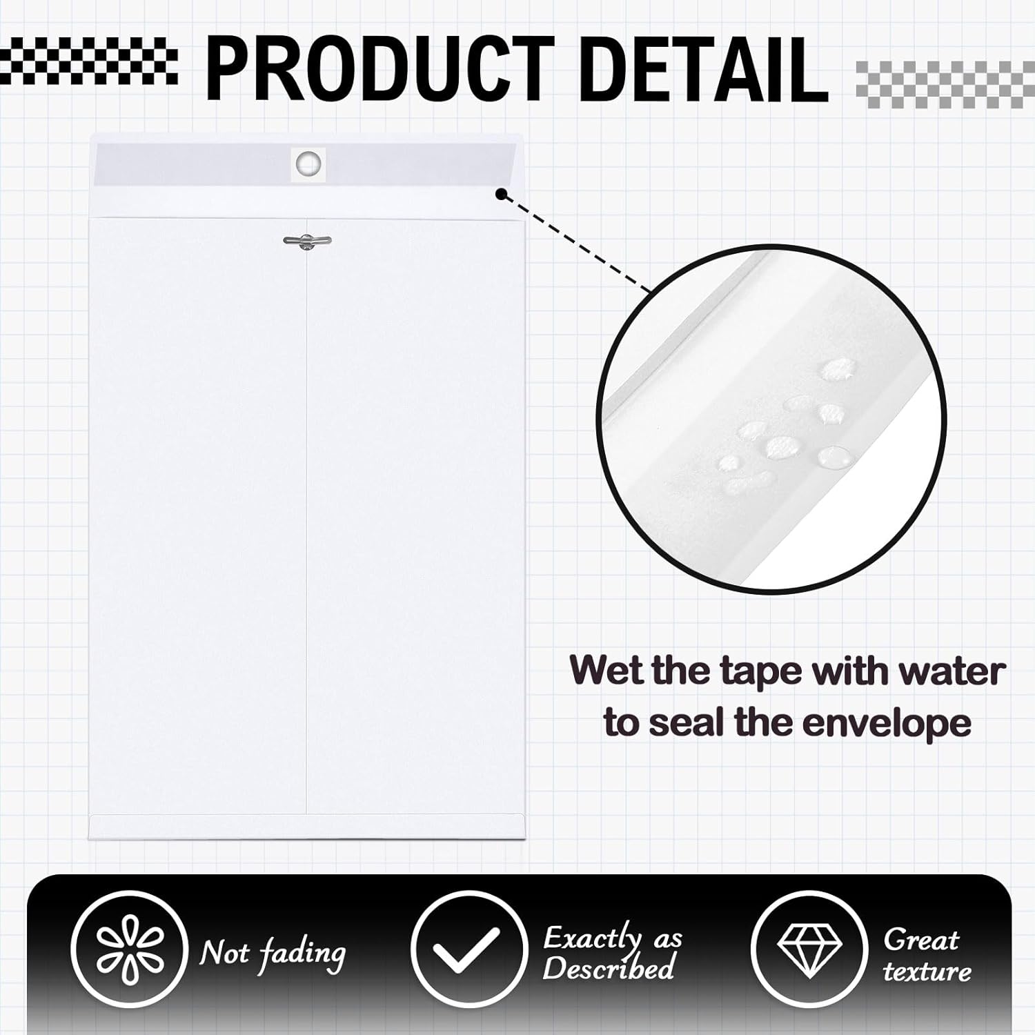 - Effortless Sealing Mechanism for Optimal Security: equipped with a metal clasp and moisture activated glue, the legal envelopes promise secure and easy storage; This sealing mechanism allows repeated opening and closing without leaving marks on the contents, to ensure the safety and protection of your documents during handling