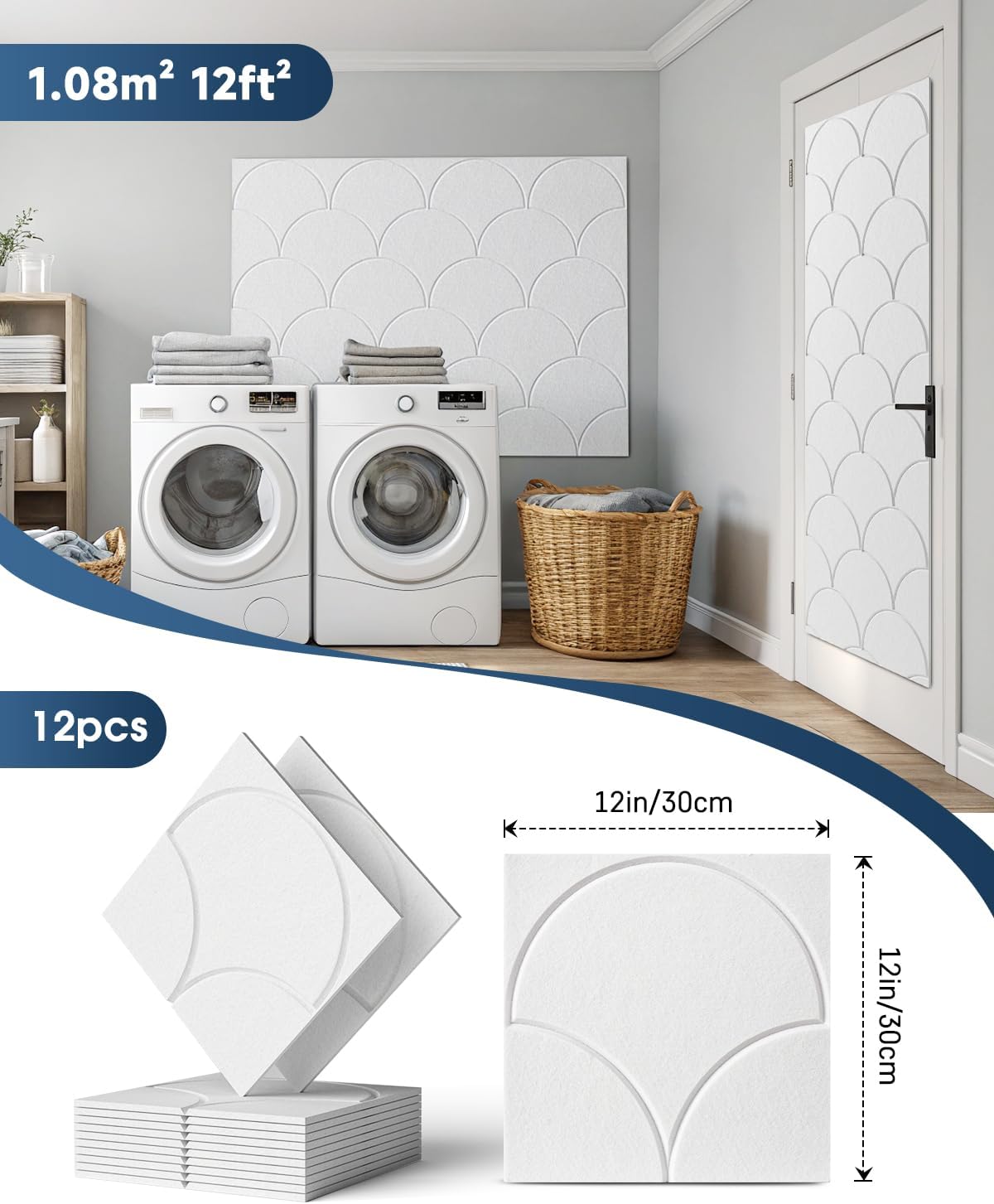 - 【Versatile Applications】Say goodbye to the dull look of traditional acoustic materials! Our sound proofing panels for walls feature a unique, three-dimensional shell-like design. The layered, streamlined form imbues your wall with a breath-taking, artistic quality. Our 12 pieces of 12" x 12" soundproofing panels provide a targeted noise reduction of 12 ft², with full coverage for even greater results. Use them as acoustic foam panels/soundproof foam on doors, walls, or ceilings to meet your diverse noise reduction needs.