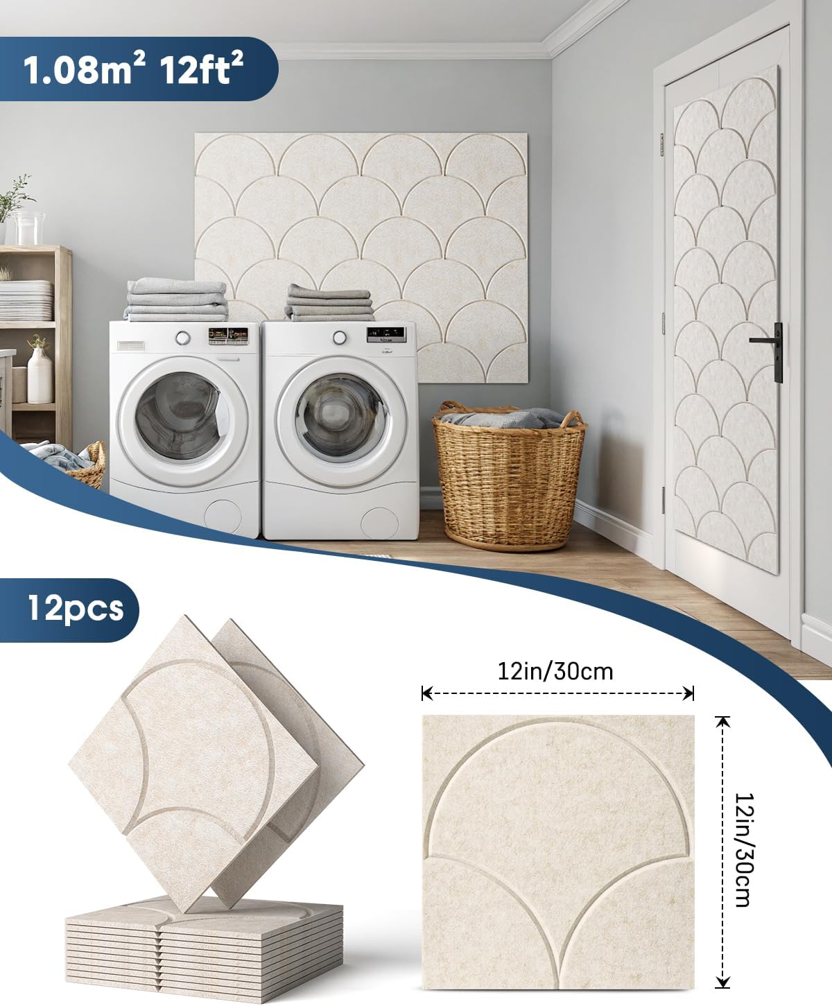 - 【Versatile Applications】Say goodbye to the dull look of traditional acoustic materials! Our sound proofing panels for walls feature a unique, three-dimensional shell-like design. The layered, streamlined form imbues your wall with a breath-taking, artistic quality. Our 12 pieces of 12" x 12" soundproofing panels provide a targeted noise reduction of 12 ft², with full coverage for even greater results. Use them as acoustic foam panels/soundproof foam on doors, walls, or ceilings to meet your diverse noise reduction needs.