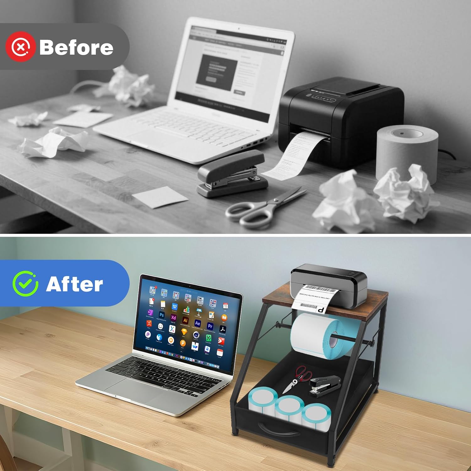 - ✅ DECLUTTER & STREAMLINE YOUR WORKSPACE: This all-in-one thermal printer stand organizes your printer, labels, and supplies into one compact hub. An essential thermal label holder for small businesses and home offices, it saves you valuable time on every order.