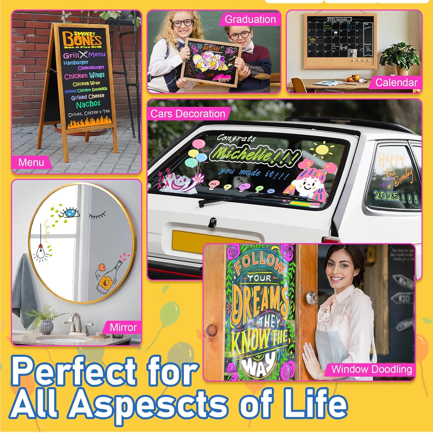 - EASY TO CLEAN - GOTIDEAL liquid chalk pens will keep your design in perfect condition,non-toxic, water-based liquid chalk markers can be erased easily by wiping the area with a damp cloth or paper towel.