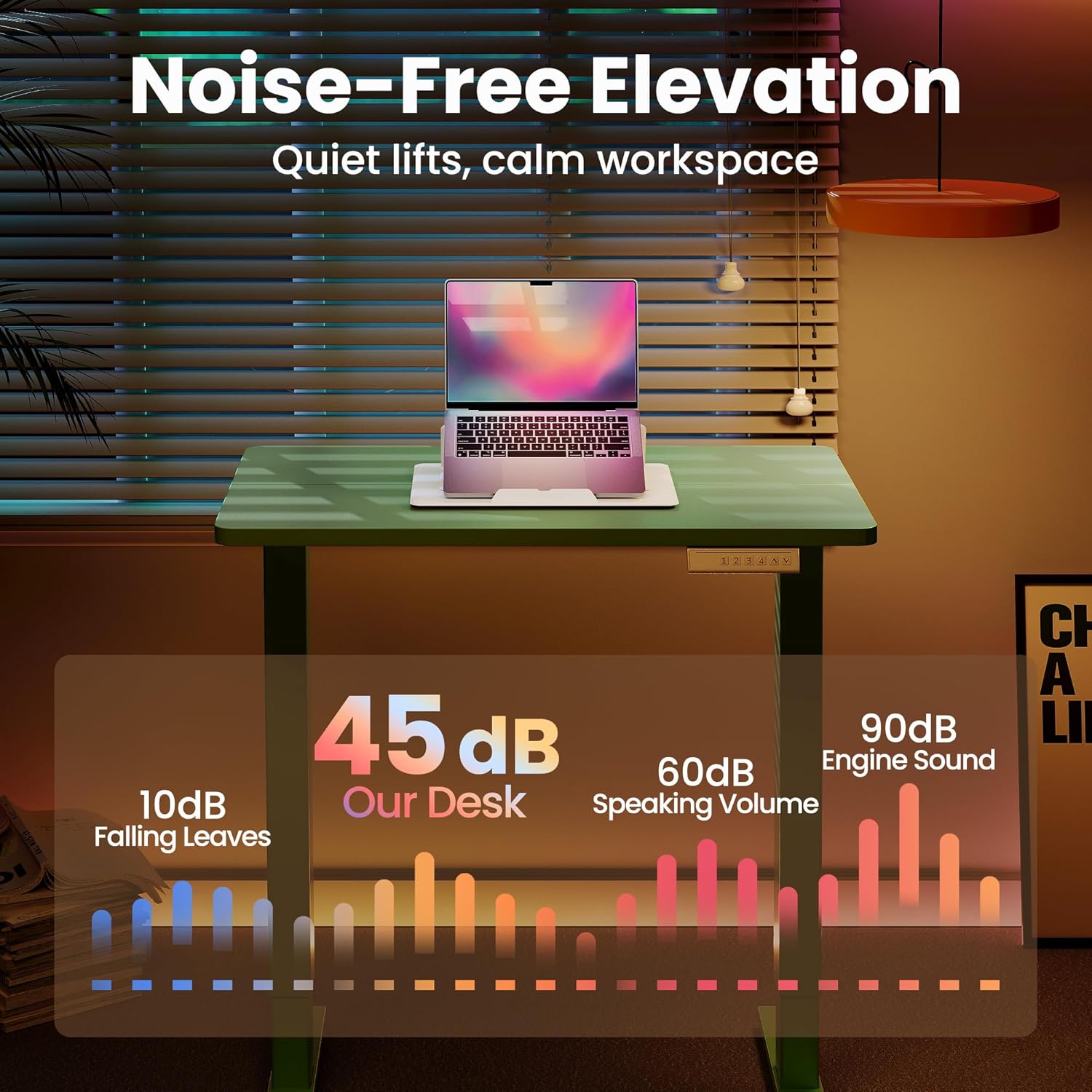 HUANUO 32" Small Electric Standing Desk Adjustable Height, 4 Memory Height Settings, Sit Stand Up Desk for Home Office & Computer Workstation, Sage Green