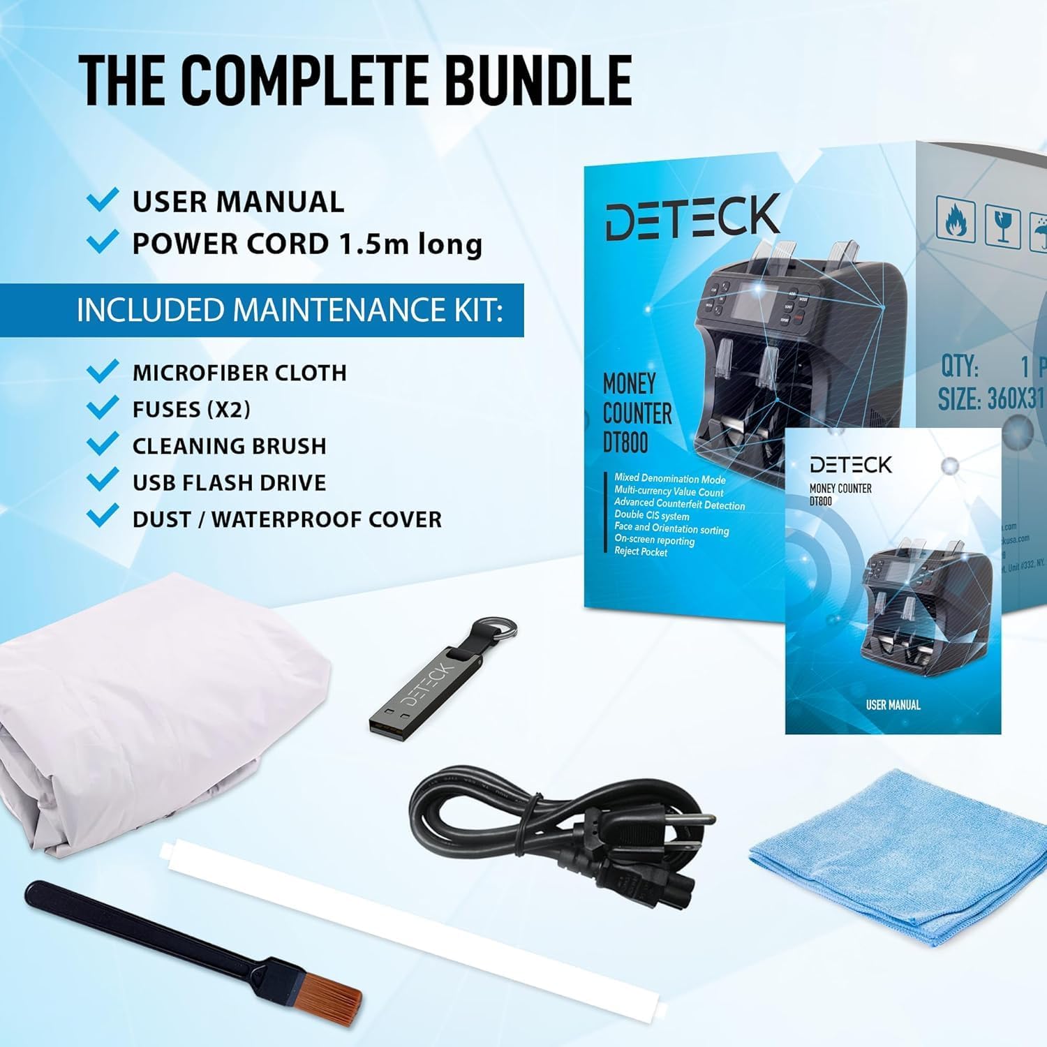 • ๐—ฃ๐—ฟ๐—ผ๐˜๐—ฒ๐—ฐ๐˜ ๐˜†๐—ผ๐˜‚๐—ฟ ๐—ฏ๐˜‚๐˜€๐—ถ๐—ป๐—ฒ๐˜€๐˜€ โ€“ If you deal with a large amount of cash and want to have a peace of mind, the DETECK DT800 Mixed Denomination Money Counter with Counterfeit bill detection accurately scans notes for authenticity, providing maximum security using advanced sensors UV, MG, IR, MT, 2CIS and Serial number recognition; you will never have to worry again about fake bills confiscated by the bank. Operate with confidence