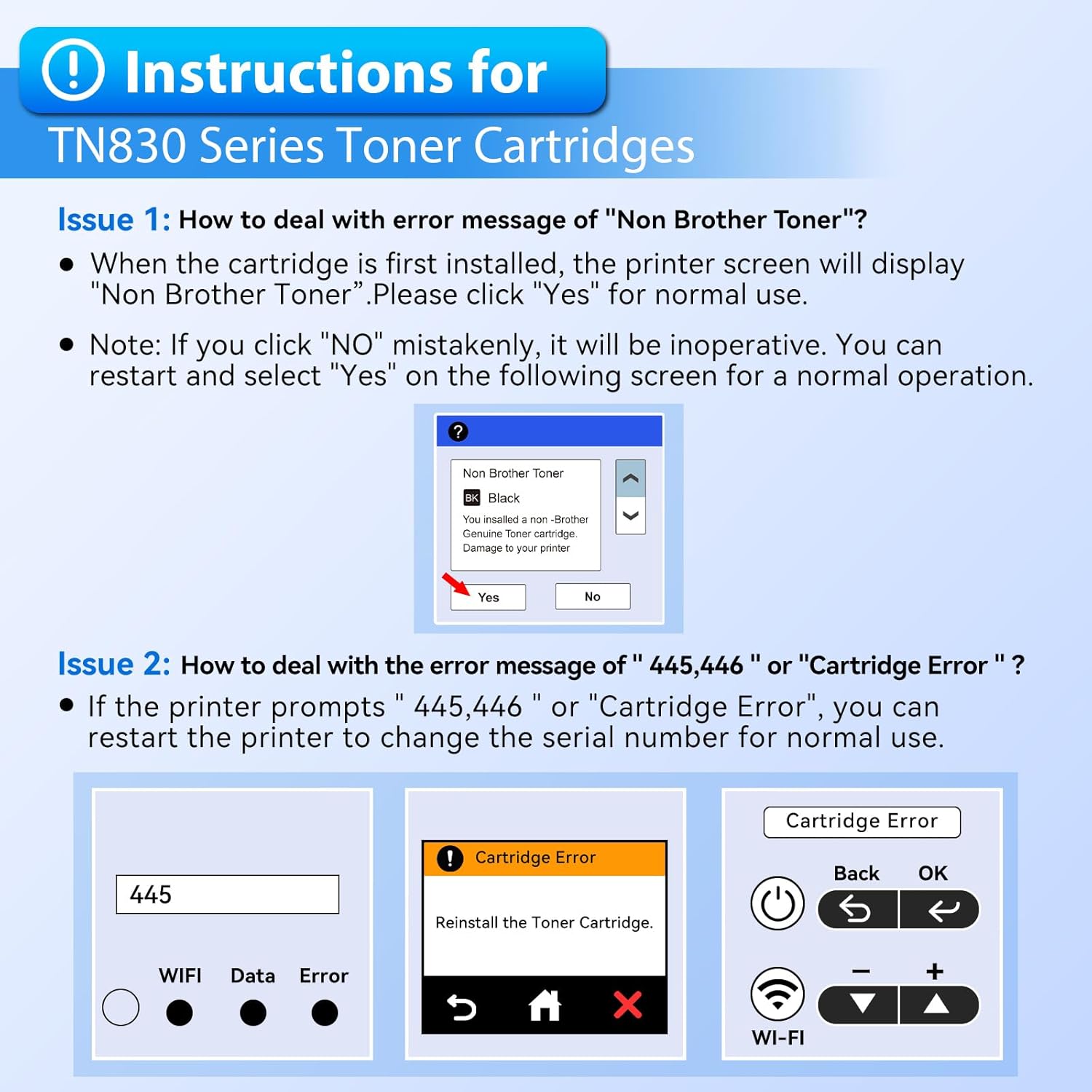 - [Package content]: 2 x TN830XL 830XL Toner Cartridges (compatible brother tn830xl toner,2pack)