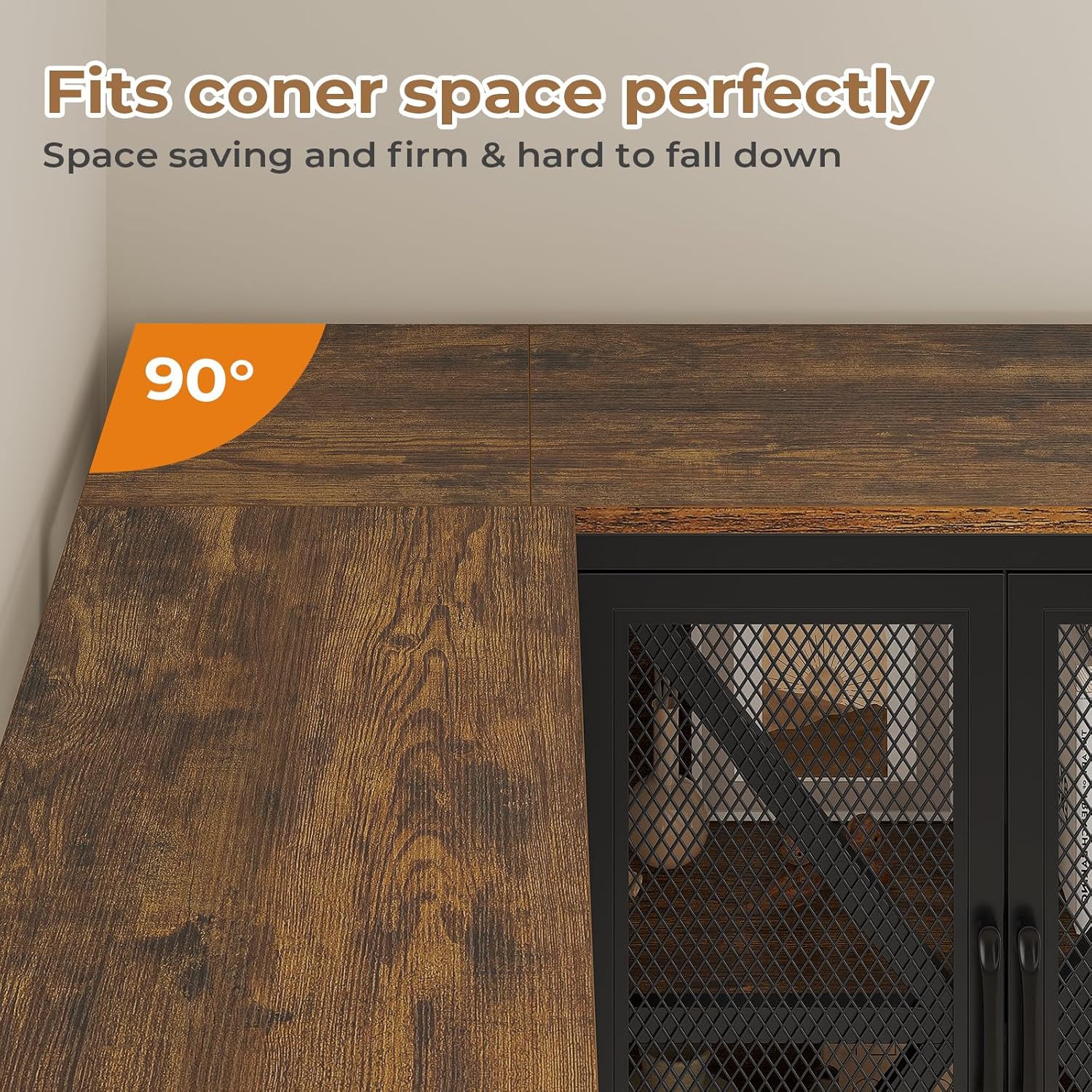Corner Bookshelf, 5 Tier Industrial Convertible Bookshelf with 6 Fabric Drawers, Corner Bookcase Large L Shaped Storage Display Shelf for Home Office, Living Room, Kitchen, Rustic Brown