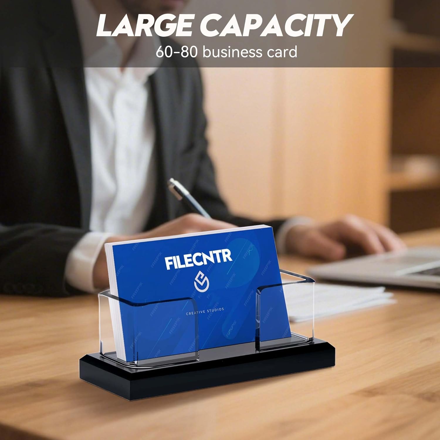 - Premium Quality: This business card holder is crafted from reliable acrylic. It combines sleek transparency with exceptional sturdiness, ensuring durability and elegance.