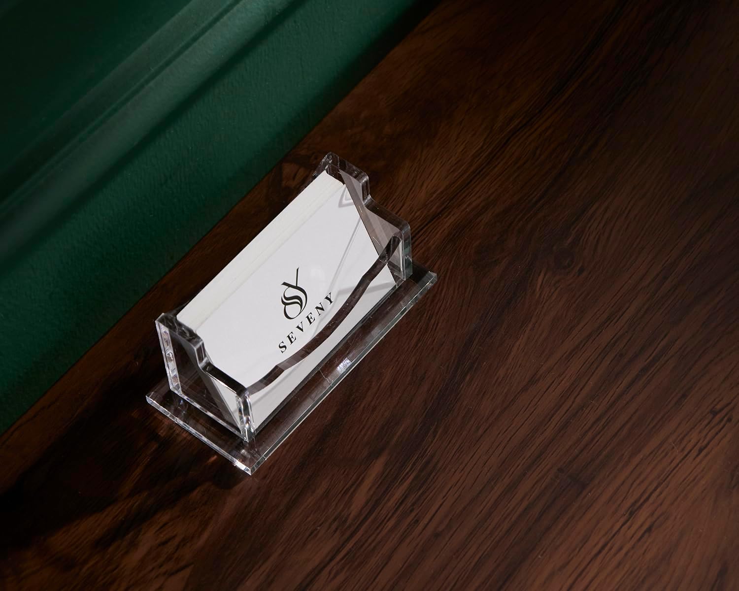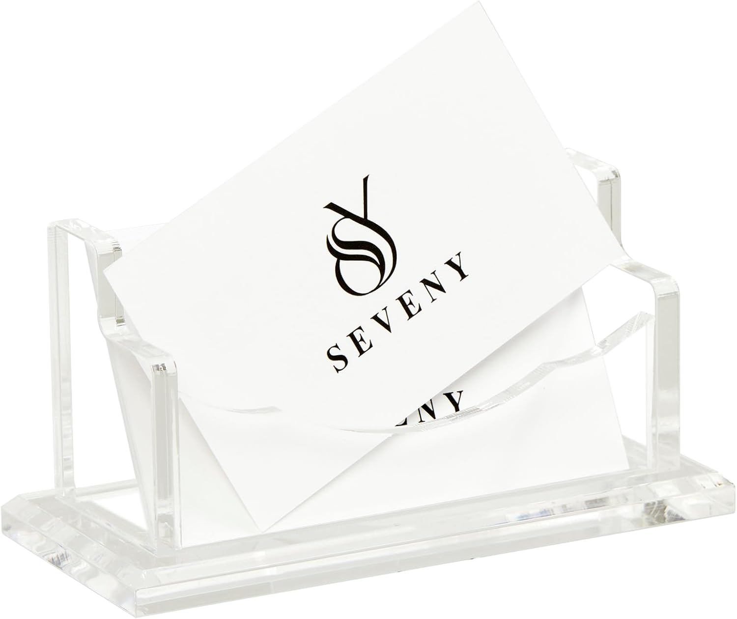 SEVENY Business Card Holder, Clear Acrylic Cards Organizer Stand for Men and Women, Business Cards Case Rack 1 Pack, Holds 60 Cards-1 Slot