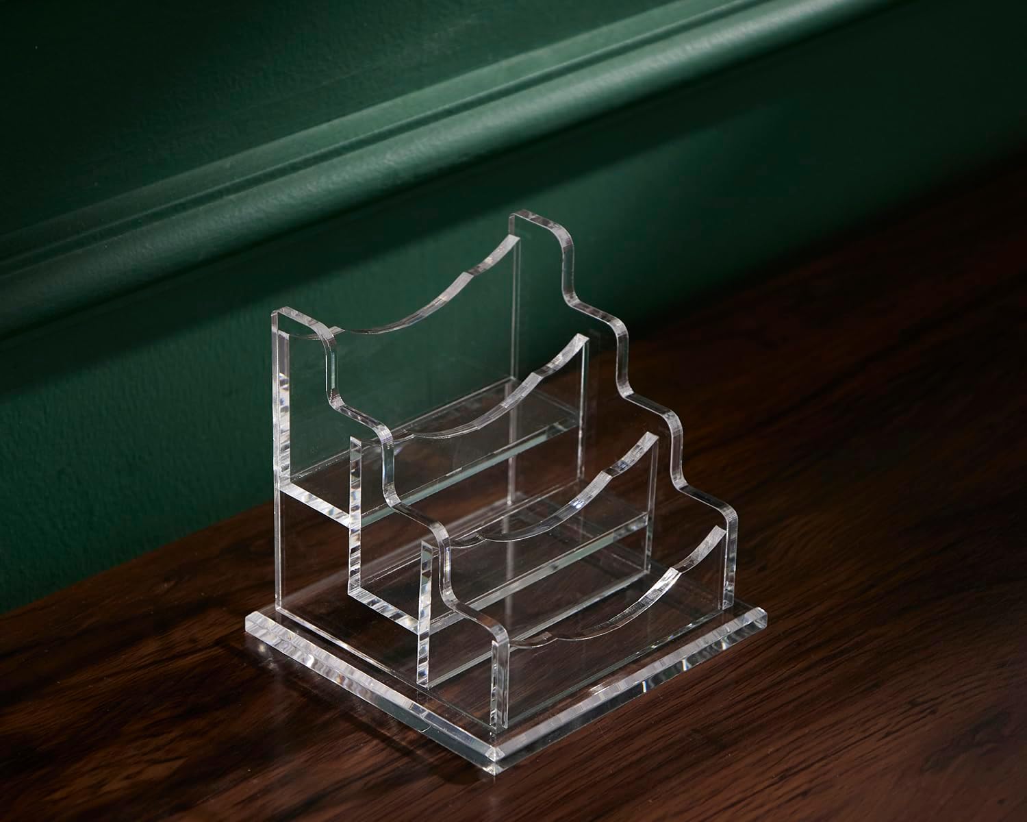 SEVENY Business Card Holder, Clear Acrylic Cards Organizer Stand for Men and Women, Business Cards Case Rack 1 Pack, Holds 180 Cards-3 Slot