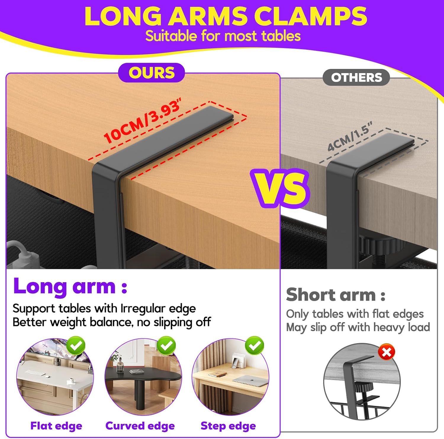 - âĄăNo Drill Installation & Wider Clampă: This under desk organizer tray has no drill clamp fits desks 0.4"-2.76" thick (metal/wood/glass). Upgraded 30% longer bracket ensures secure desk back rod width greater than 1.57" installationïŒhold without damaging your desk