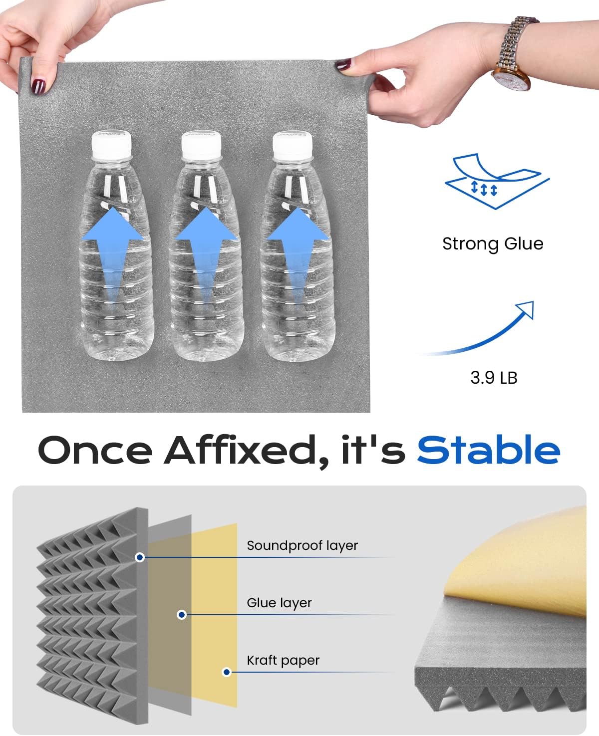 - 🚩【Convenient Self-Adhesive】For Sonicism acoustic foam panels,you don't need to buy additional spray glue and double-sided tape. Our soundproof wall panels comes with a self-adhesive layer, tear off the kraft paper on the back and stick it at will. The strong and long-lasting adhesive keeps the soundproof panels firmly fixed on the wall. Easy to install, don't worry about falling off.