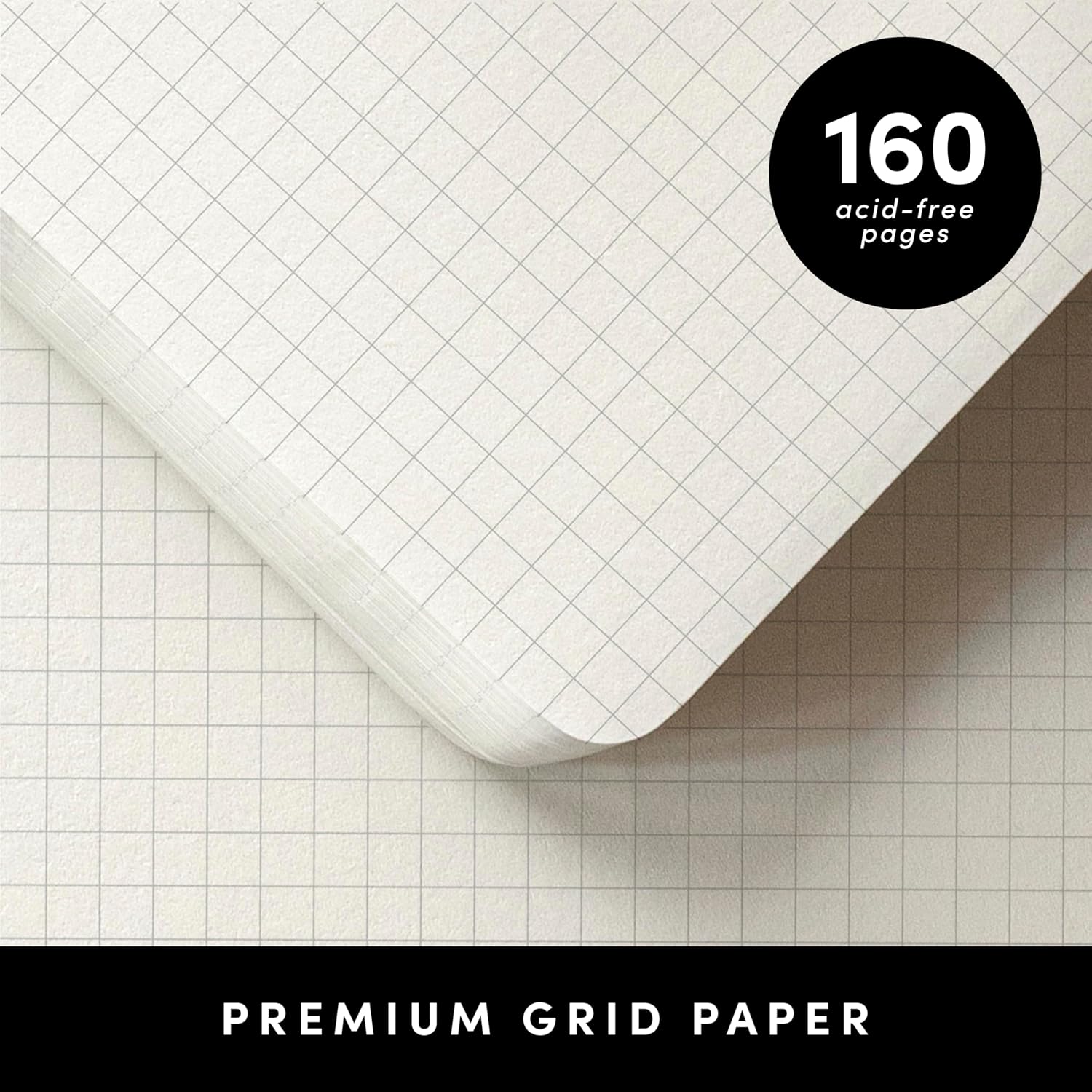 - PREMIUM PAPER: Made with high-quality, 100 gsm acid-free graphing paper in light ivory color, our journal paper is thicker than average notebooks & note pads, so you can confidently use most pens, pencils, and markers without ghosting and bleed-through.