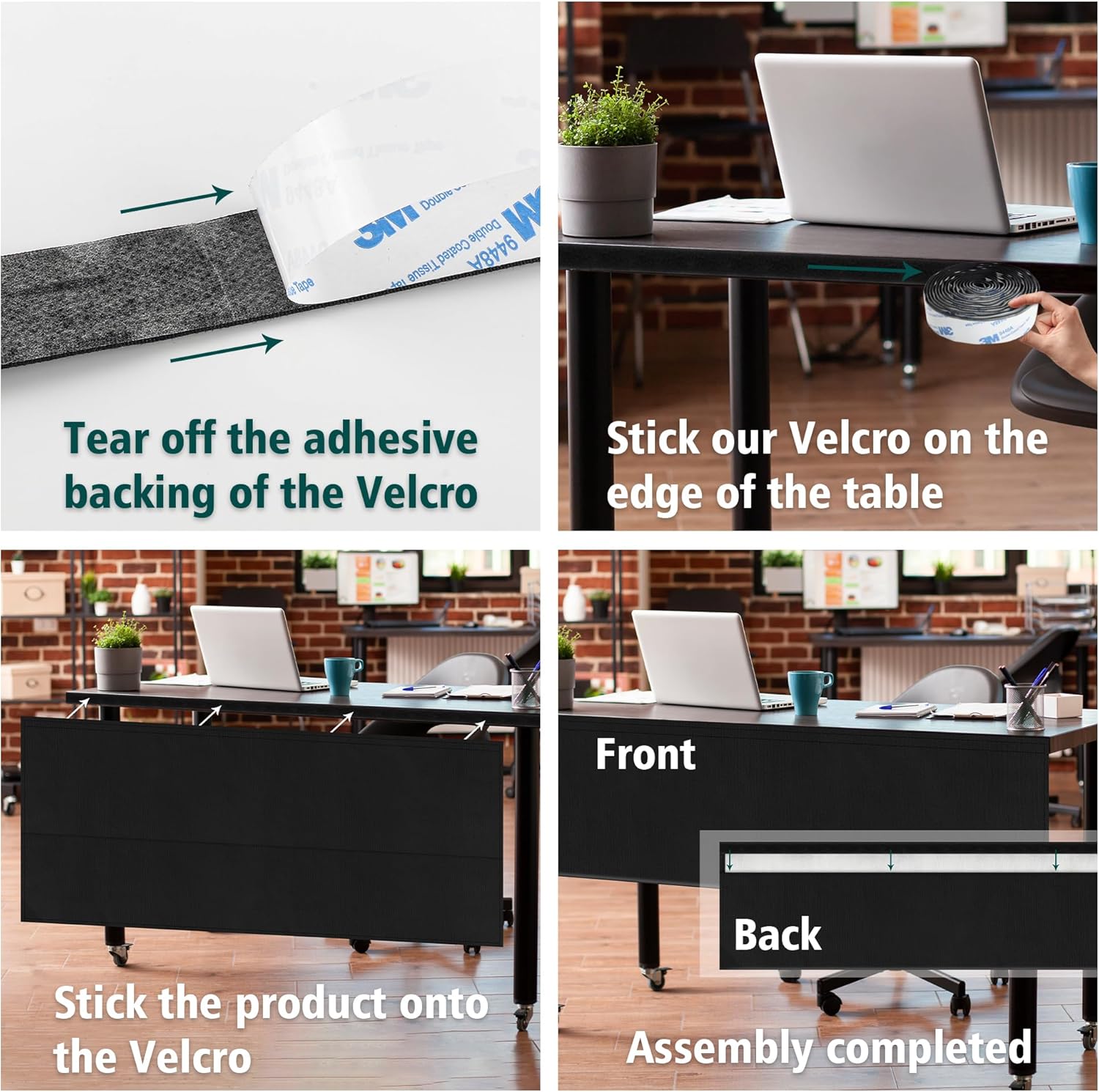 Under Desk Privacy Panel with Cable Management Organizer Sleeve Self-Adhesive Modesty Panel for Cord Organizer Pockets and Desk Skirt for Home Office or Standing Workstation (48 in)