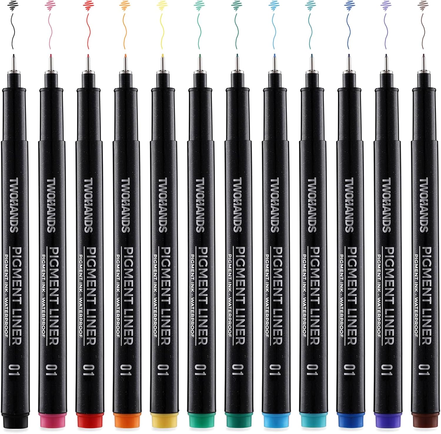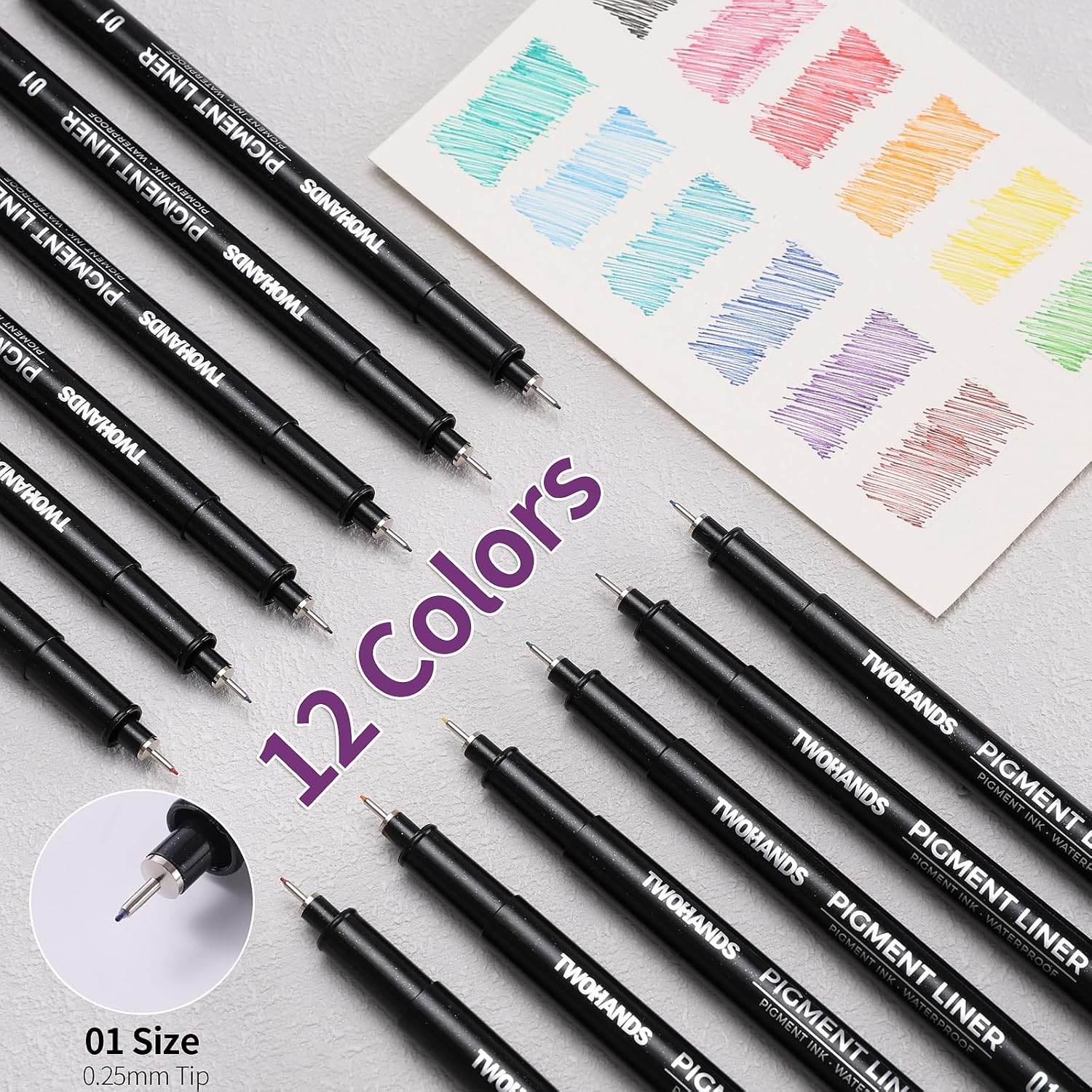 TWOHANDS Micro Pens 01,Art Pens,Fineliner Ink Pens,Set of 12 Technical Drawing pen,Pigment Pen,Fine Point,colord,Waterproof,for Art Watercolor,Sketching,Anime,Manga, 21281