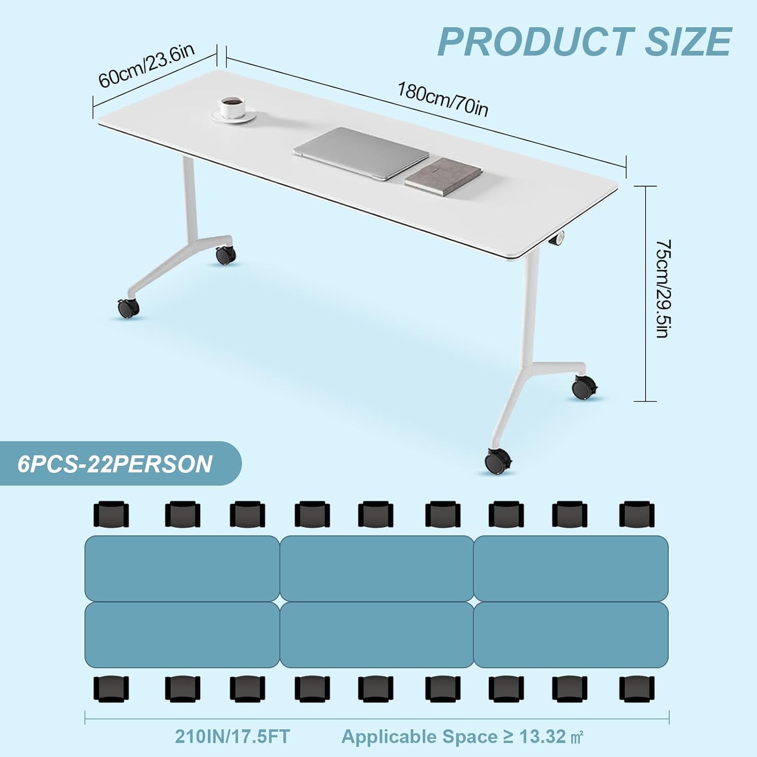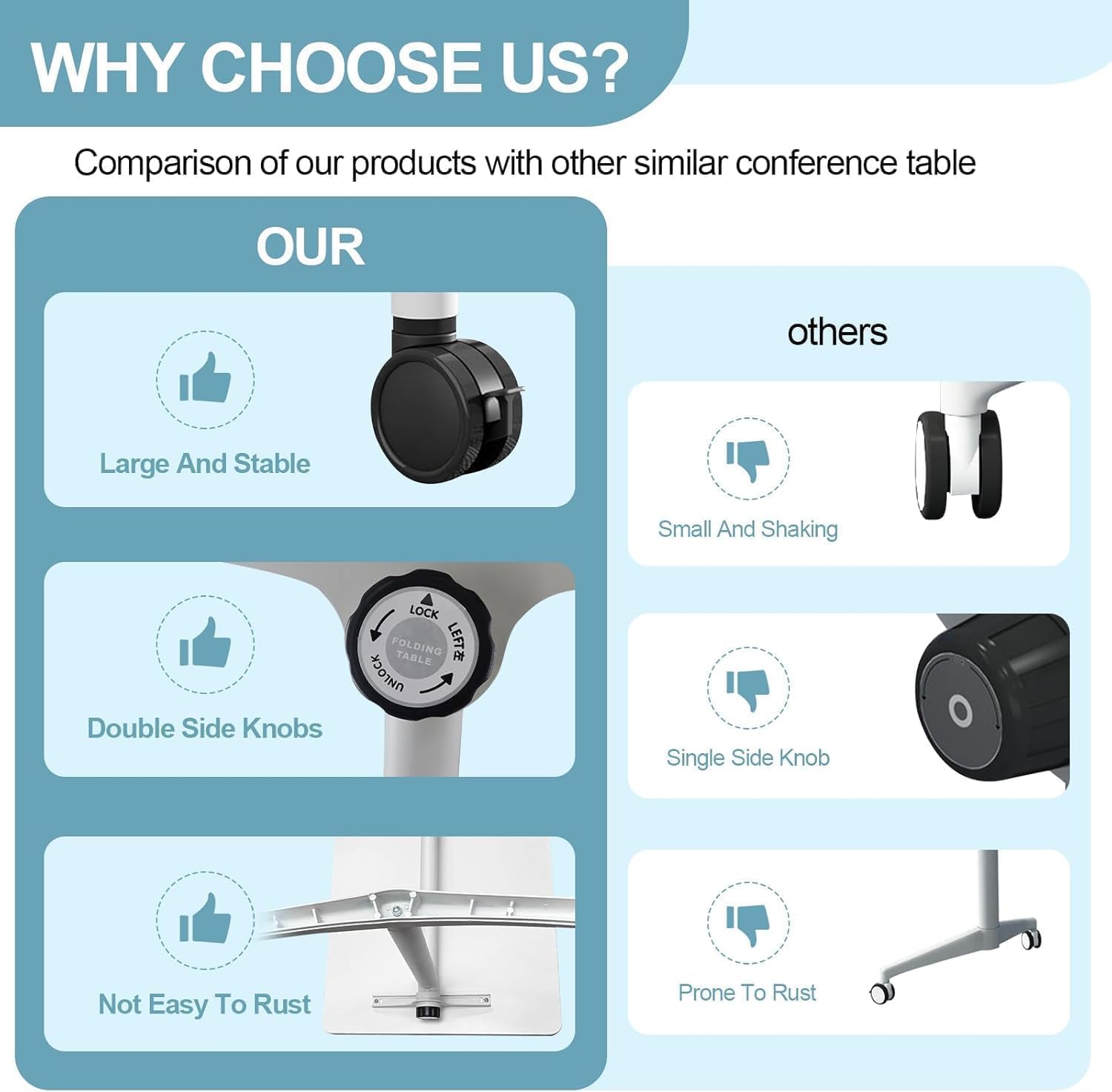 - ✅【360° MOVEMENT】The conference room table is equipped with 4 silent universal wheels. The casters can quickly move 360° to any corner, making it flexible and convenient, saving effort and worry. Conference tables can be arbitrarily combined according to different conference grouping needs.