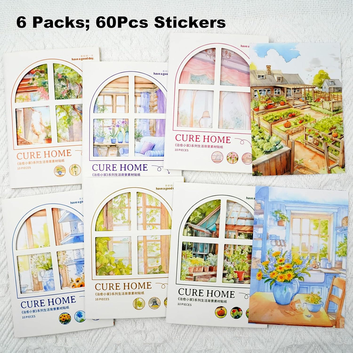 - Charming Interior Designs: Features 6 cozy home themes including bedrooms gardens kitchens and more each with 10 pieces for a total of 60 stickers that bring visual warmth and storytelling to your scrapbook and journal pages