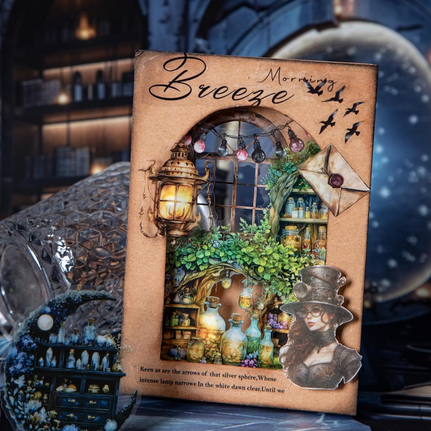 - Mystical Fantasy Design: This sticker set includes 6 themes with 10 designs each total 60PCS featuring enchanted cabinets moon bookshelves and potion shelves that add whimsical magic to any journal or scrapbook