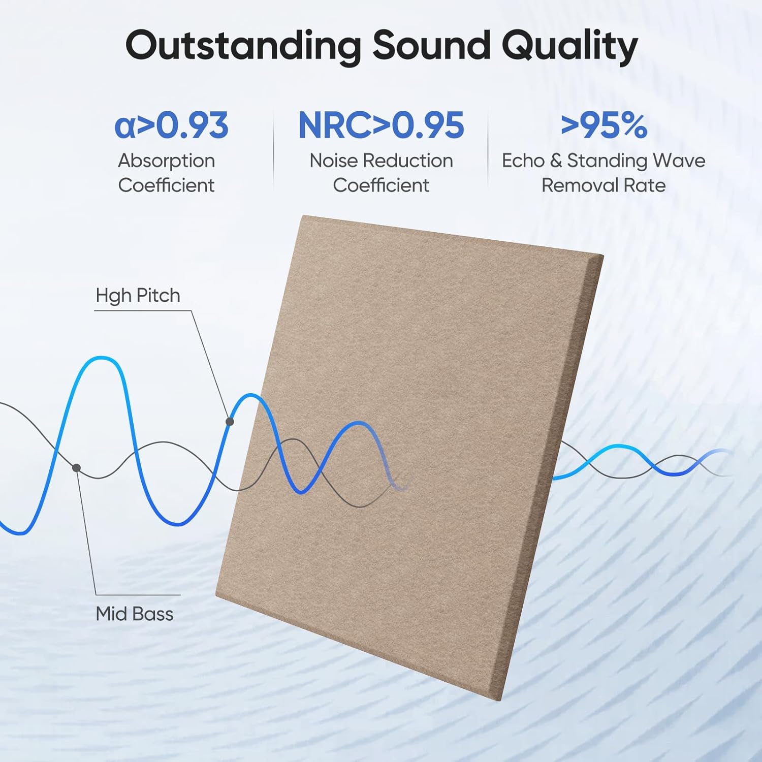 - Exceptional Sound Absorption -- Crafted with high-density polyester fiber (420 lb/m³), our acoustic panels achieve a sound absorption coefficient of up to 0.95, effectively minimizing echoes and reducing background noise for a comfortable environment.