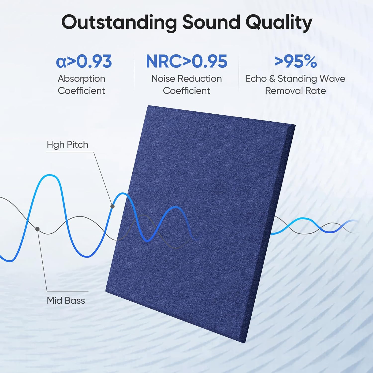 12 Pack 12" X 12" X 0.4" Acoustic Panels for Wall Sound Absorbing,Square Self-Adhesive Sound Panels, High Density Suitable for Multiple Scenarios(Sapphire Blue)