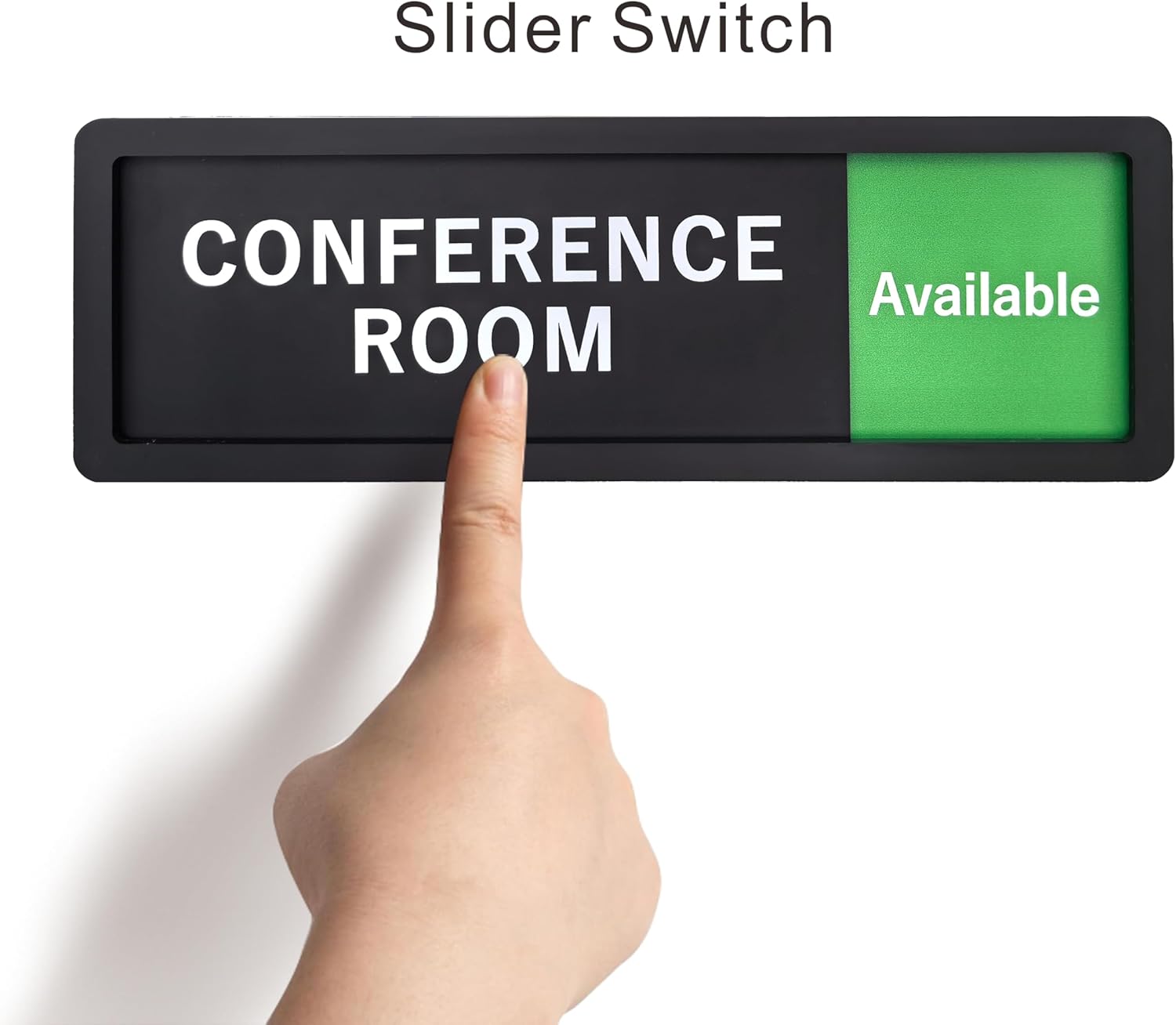 Conference Room Sign – In Use / Available Slide Switch Sign, Premium Durable Acrylic Material, Super Strong Self-Adhesive, Quick Installation, Suitable For Your Home And Business (9×3 Inches, Black)(Conference Room)