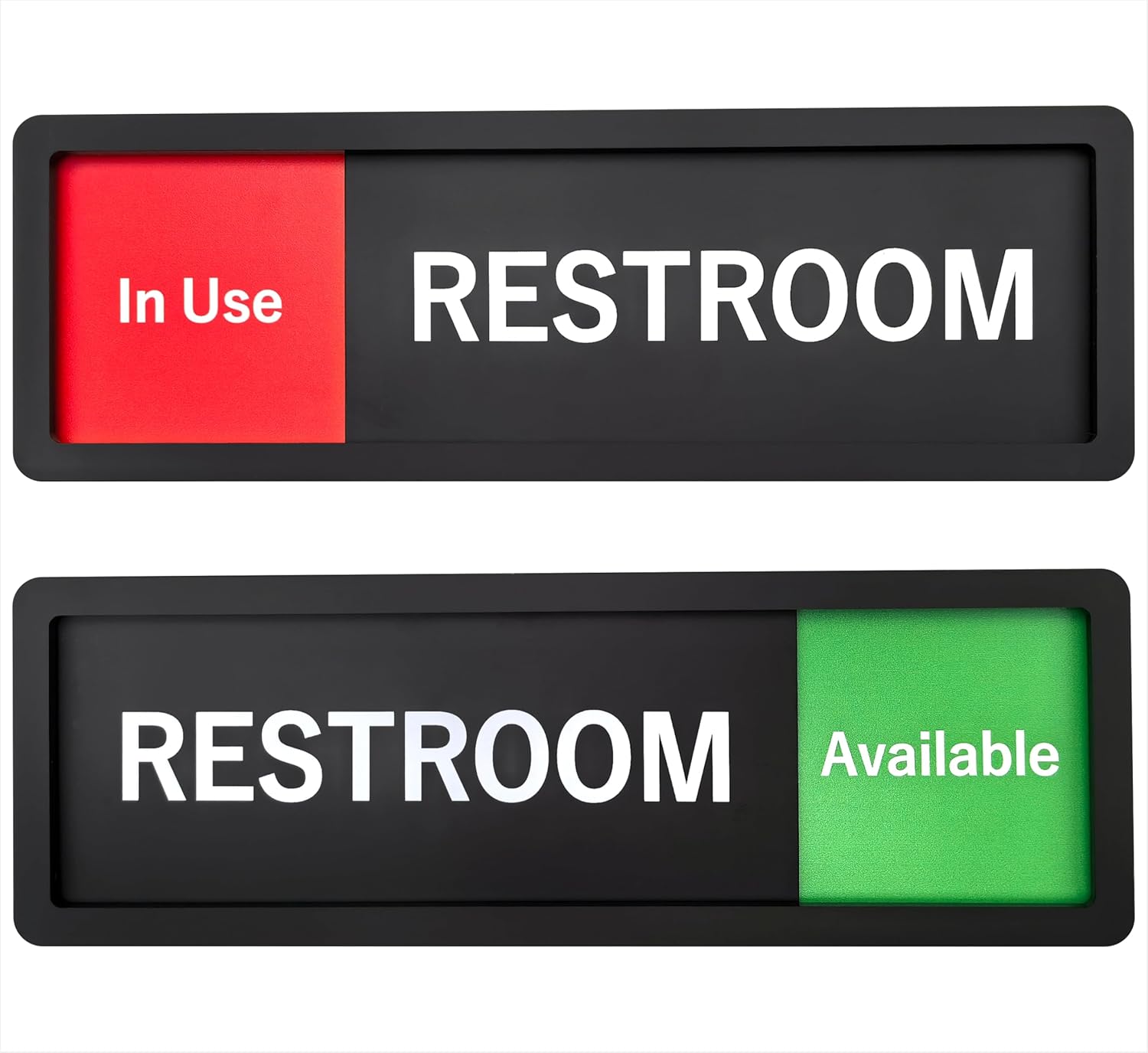 Restroom Sign – In Use / Available Slide Switch Sign ,Premium Durable Acrylic Material, Super Strong Self-Adhesive, Quick Installation, Suitable For Your Home And Business ( 9×3 Inches, Black) (Restroom)