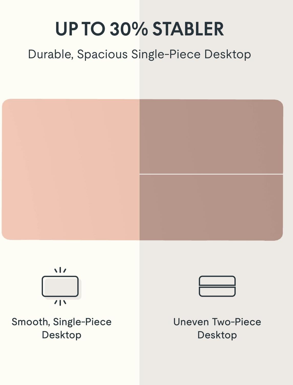 - SPACIOUS ONE-PIECE DESKTOP: Experience the elegance of a completely smooth, seamless desktop surface. This design not only enhances the aesthetic but also ensures a sturdier and more stable structure compared to spliced tabletops.