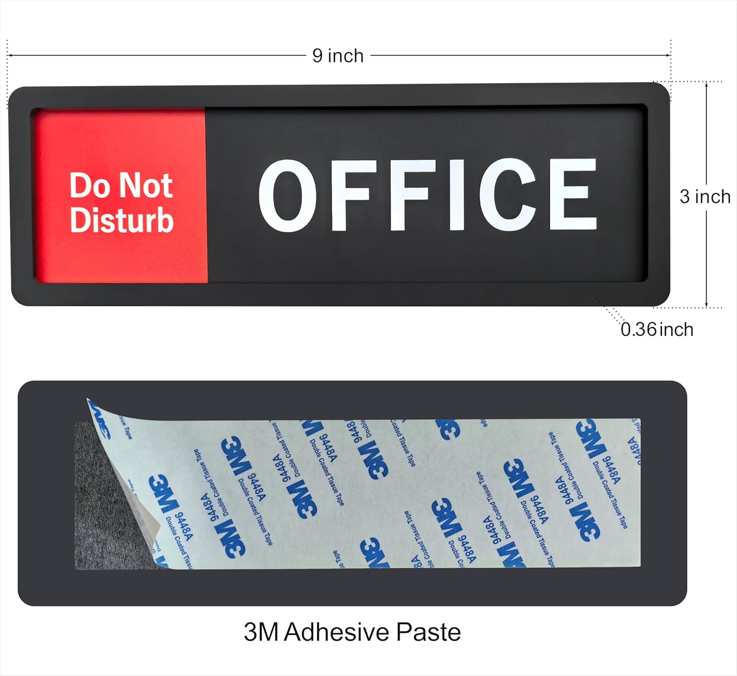 Office Sign – Do Not Disturb / Knock Welcome Slide Switch Sign, Premium Durable Acrylic Material, Super Strong Self-Adhesive, Quick Installation, Suitable For Your Home And Business (9×3 Inches, Black) (Office)