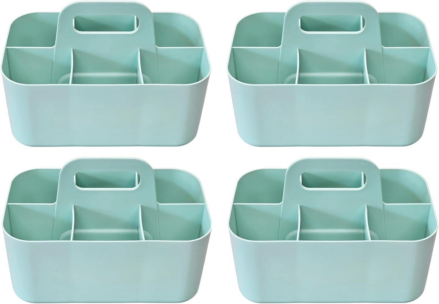 Small Stackable Plastic Caddy with Handle 6 Compartment | Desk, Makeup, Dorm Caddy, Classroom Art Organizers - 4 Pack, Made In USA (Mint)