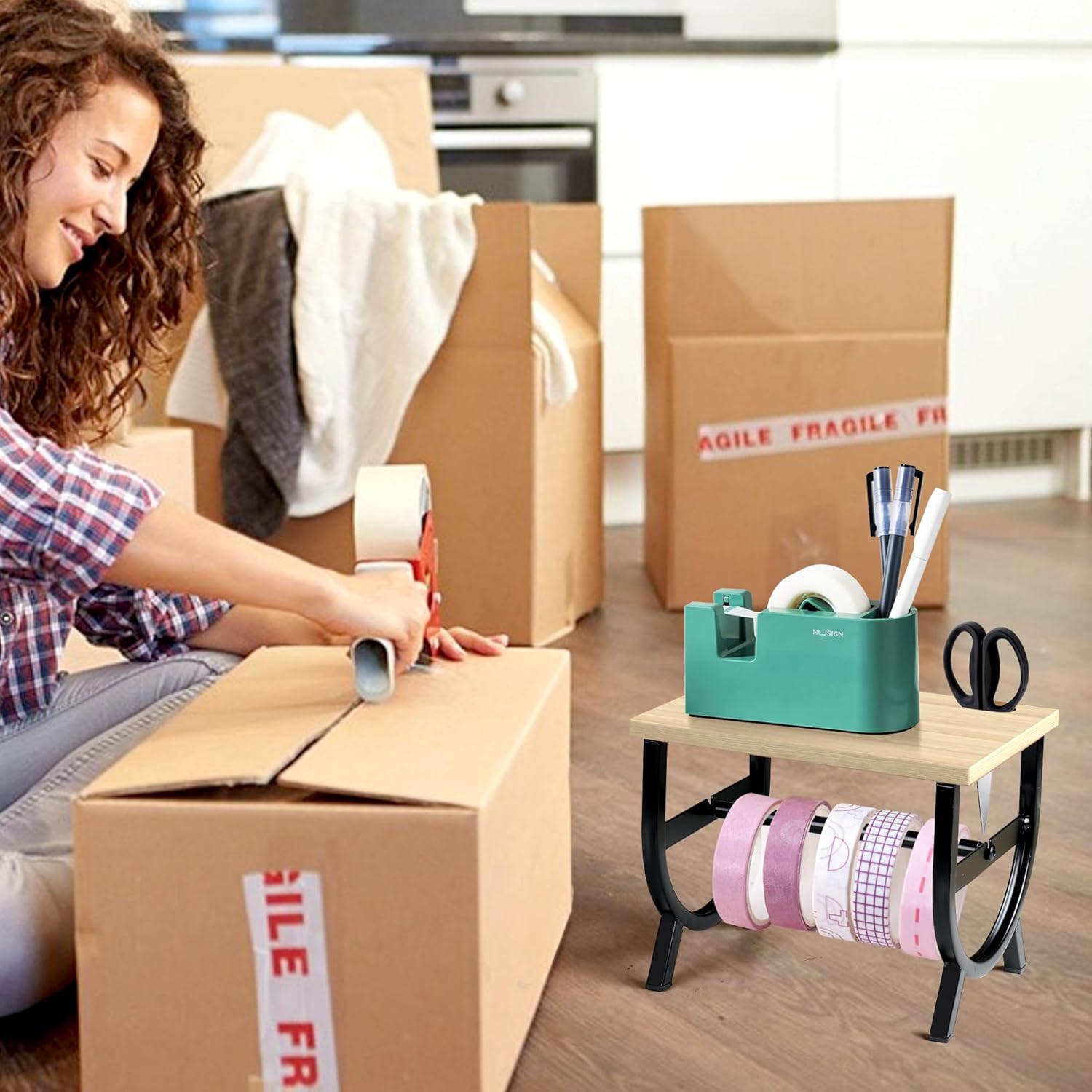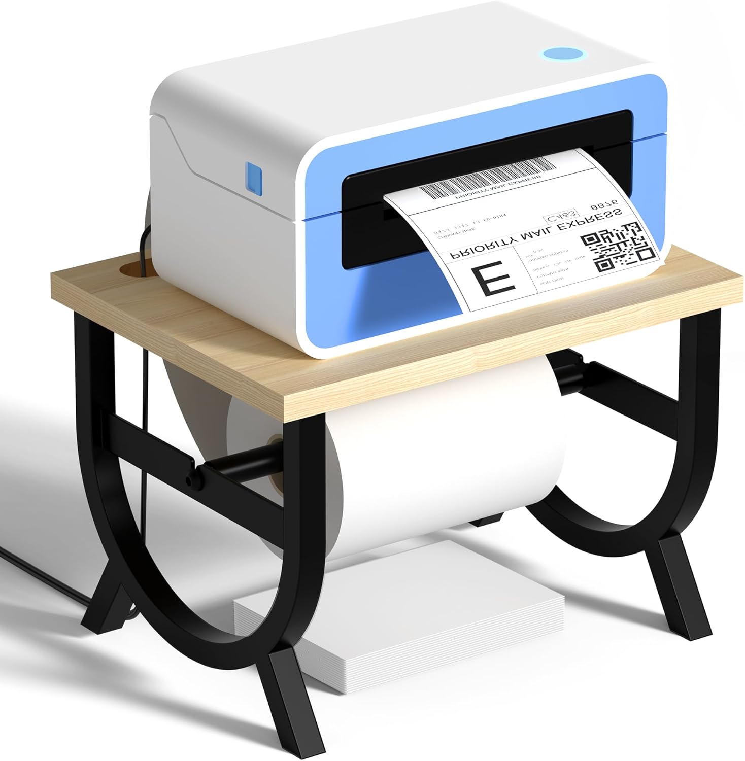 - STURDY CONSTRUCTION: Our label holder for thermal printer are made of durable wood and iron, with better load bearing capacity , which can put down different types of label machines. It also has a non-skid pad design on the bottom, so that the sticker roll holder can remain stable during the use of the labeling machine