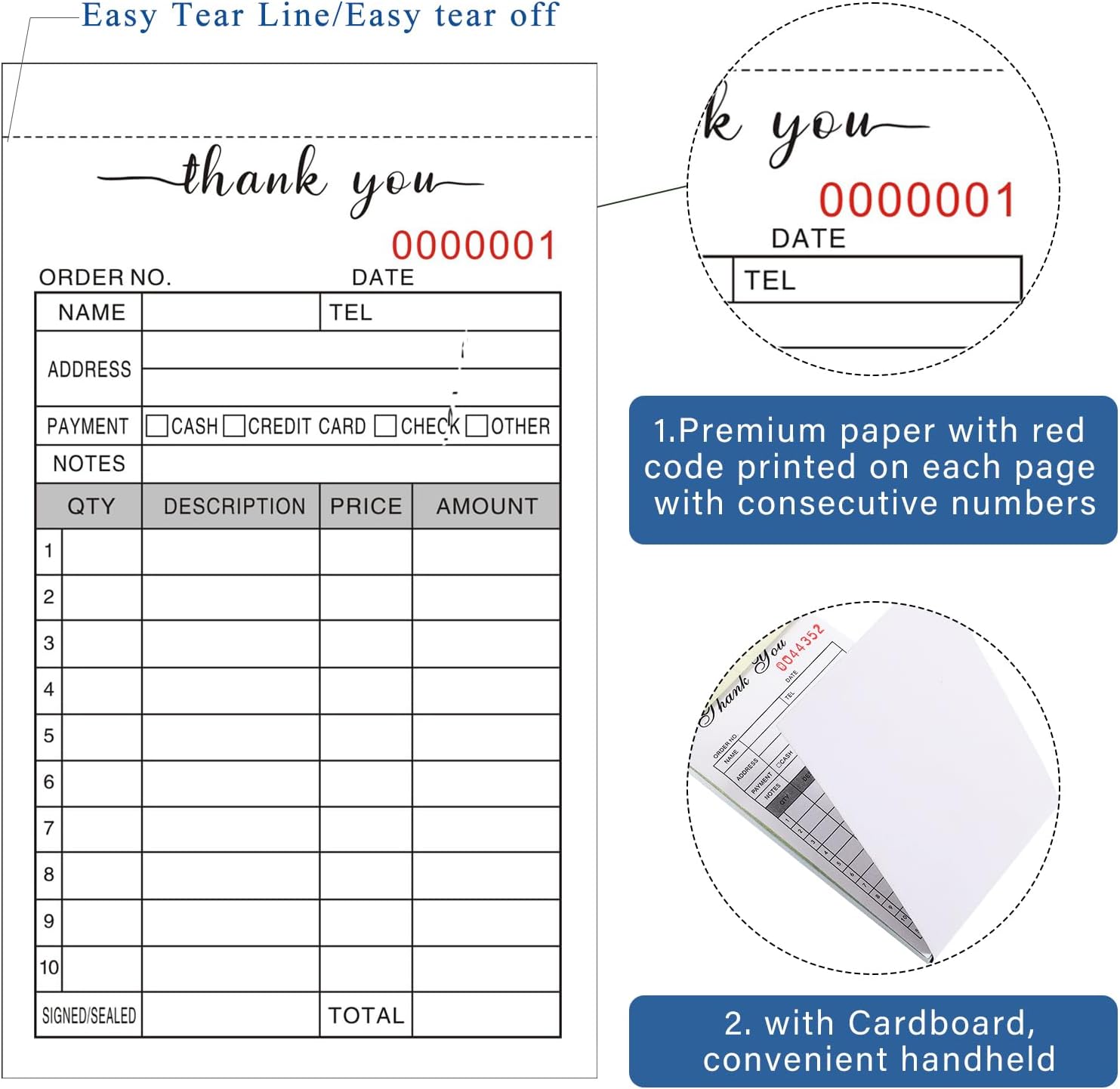 12 Pack Thank You Receipt Book, 3.4x5.5" Handheld 2-Part Carbonless Sales Invoice Book, Invoice Pad with Cardboard for Small Boutique Business, (50 Sets)