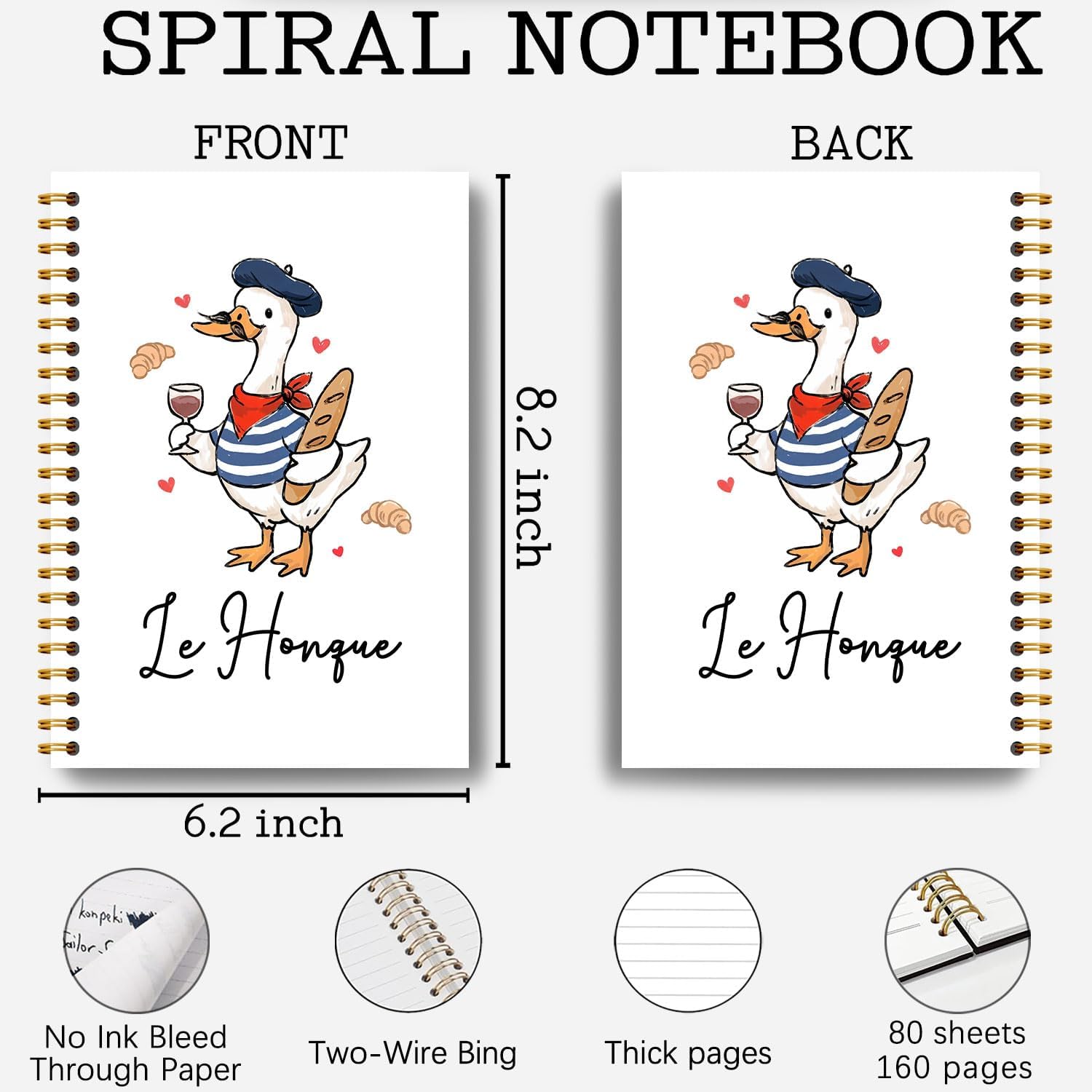 Guymn French Goose Notebook Journal, Geese Lover Gifts, French Baguette Lovers Gifts, Le Honque Funny Beret Goose Hardcover Spiral Notebook 5.5x8.3 Inch
