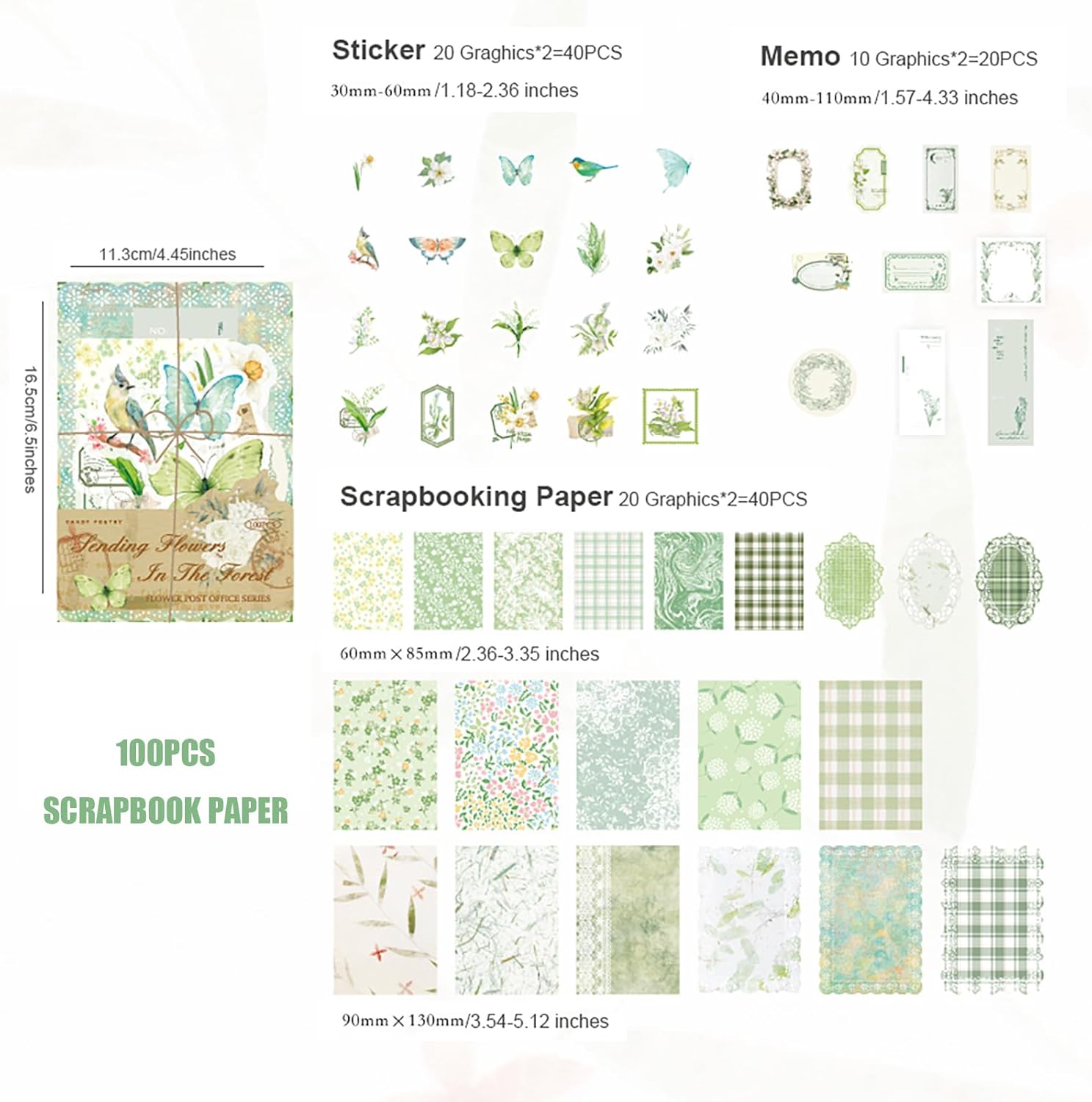 - Floral Themes- The journaling supplies includes 100 sheets (50 patterns*2) of vintage floral themed scrapbooking paper. 40pcs stickers featuring butterflies, birds, and flowers. 40 sheets scrapbooking paper and 20 sheets memos. This set combines memo paper and stickers, making it even more convenient and easy to use, perfectly catering to all your diverse DIY needs