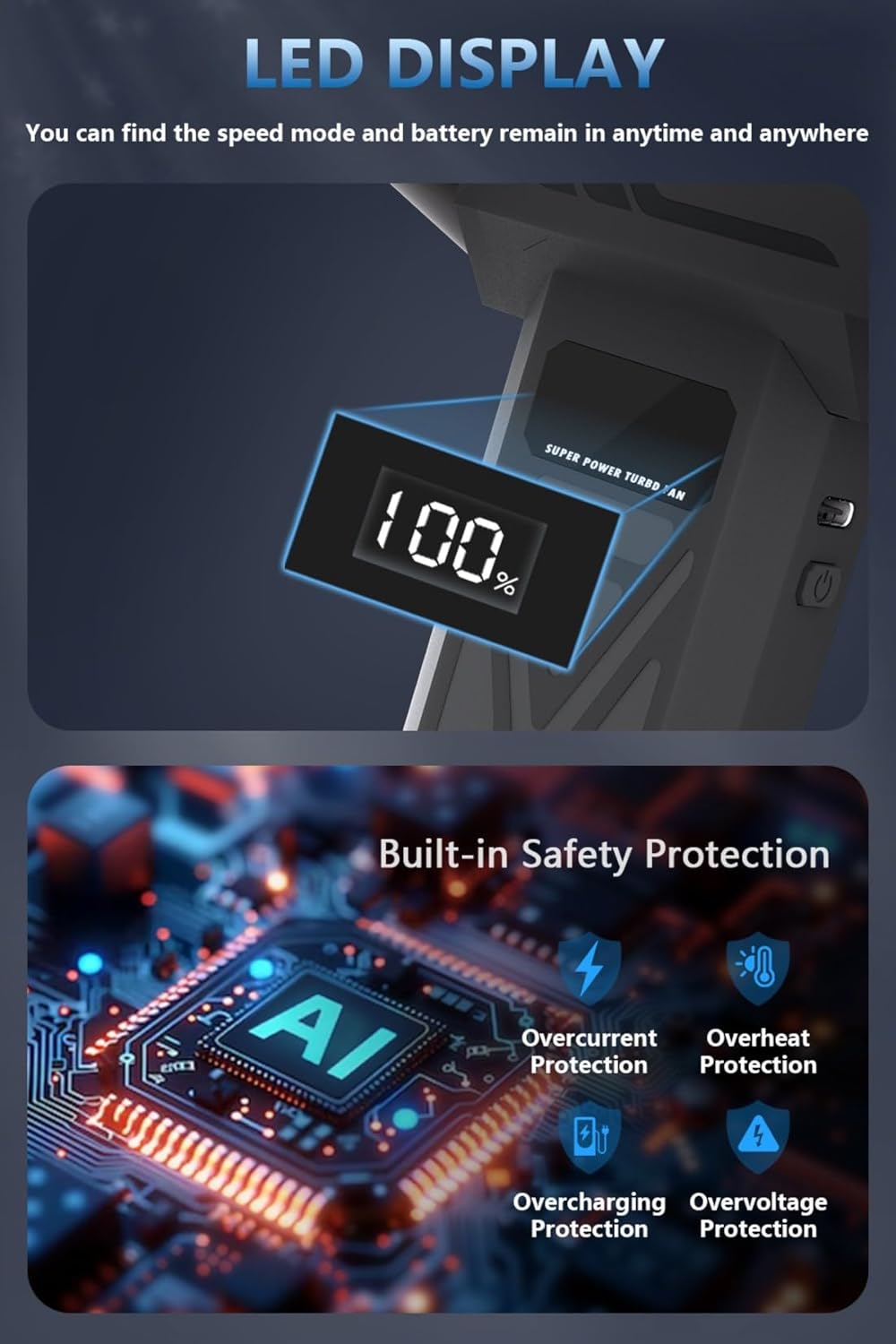 - 【Fast Charging & LED Display】The compressed air duster has a built-in 4000mAh battery, which can run continuously for 20-90 minutes. Comes with USB-C fast charging cable, fully charged within 3-4 hours, high-definition LED display screen which allows you to view the remaining battery level and the wind gear. Rechargeable air duster designed for deep cleaning, the built-in LED light illuminates your cleaning area upon activation.