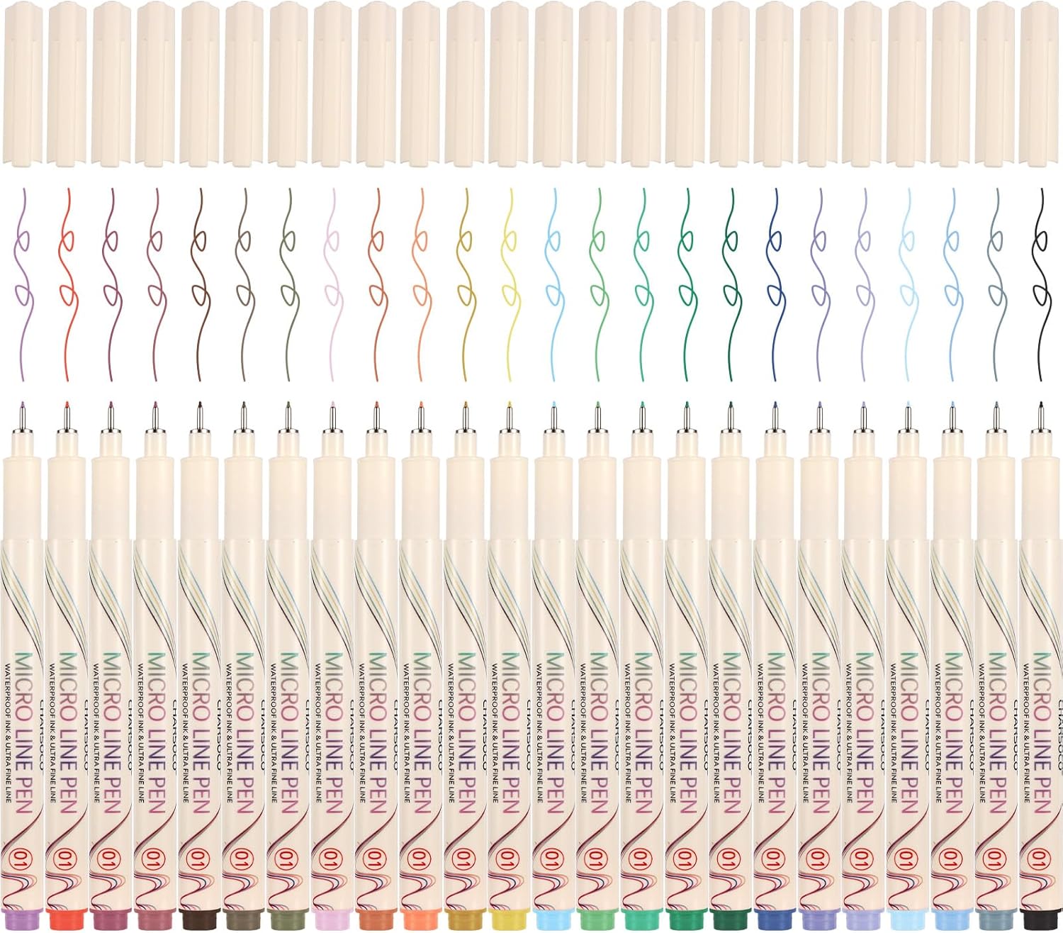 01 Micro Fine Point Pen Set - 24 Waterproof Archival Ink Colors, 0.25mm Fineliner Pens for Art Illustrations, Sketching, Anime, Manga, Technical Drawings & Scrapbooking