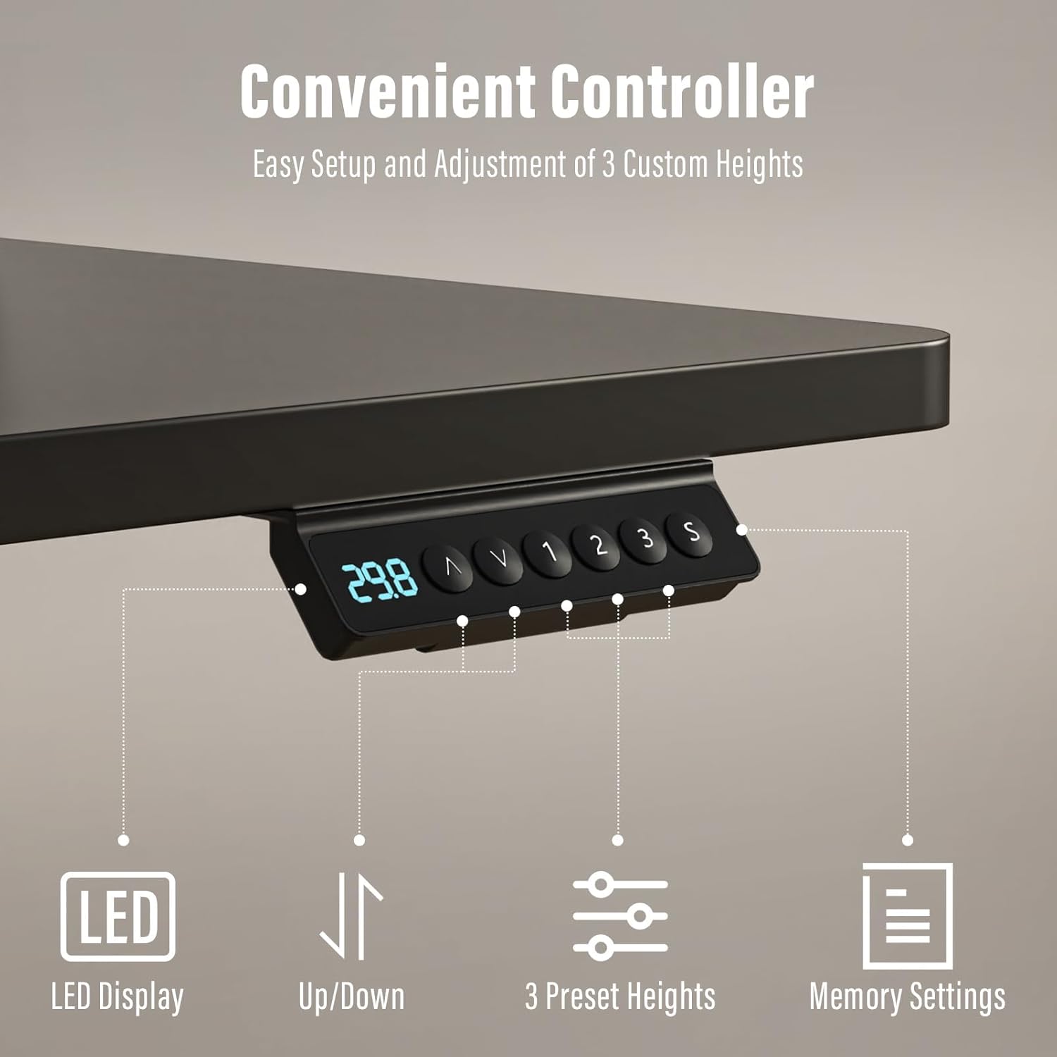- Special Feature : 3 Memory Height Presets, 30" Extra-Width Desktop, Cable Management Tray, Thickened Support Legs