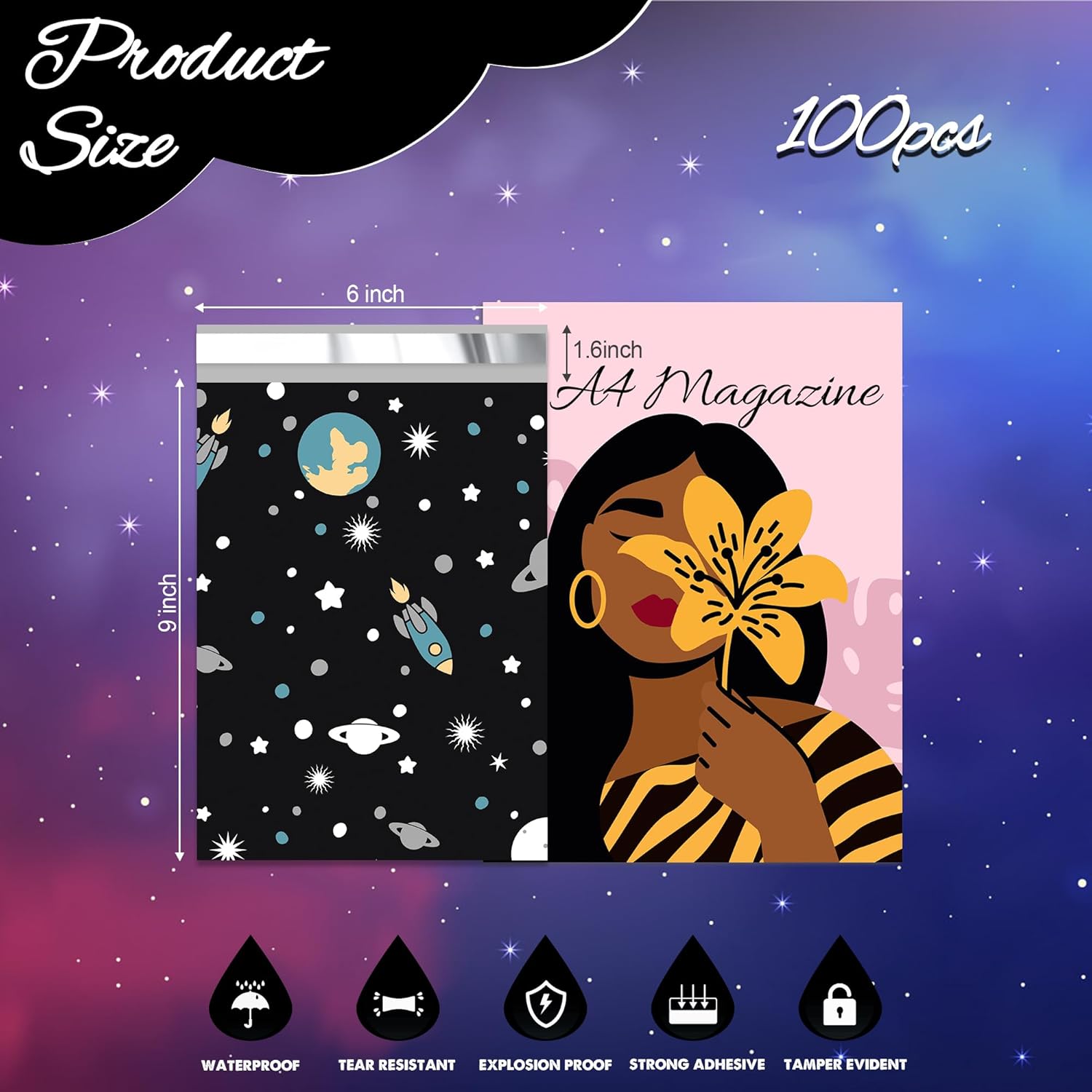 Planets Poly Mailer 6x9 Inch 100 Pcs, Waterproof Shipping Bags for Clothing, Tear-Resistant Mailier Bags, Strong Mailing Bags with Self-Seal
