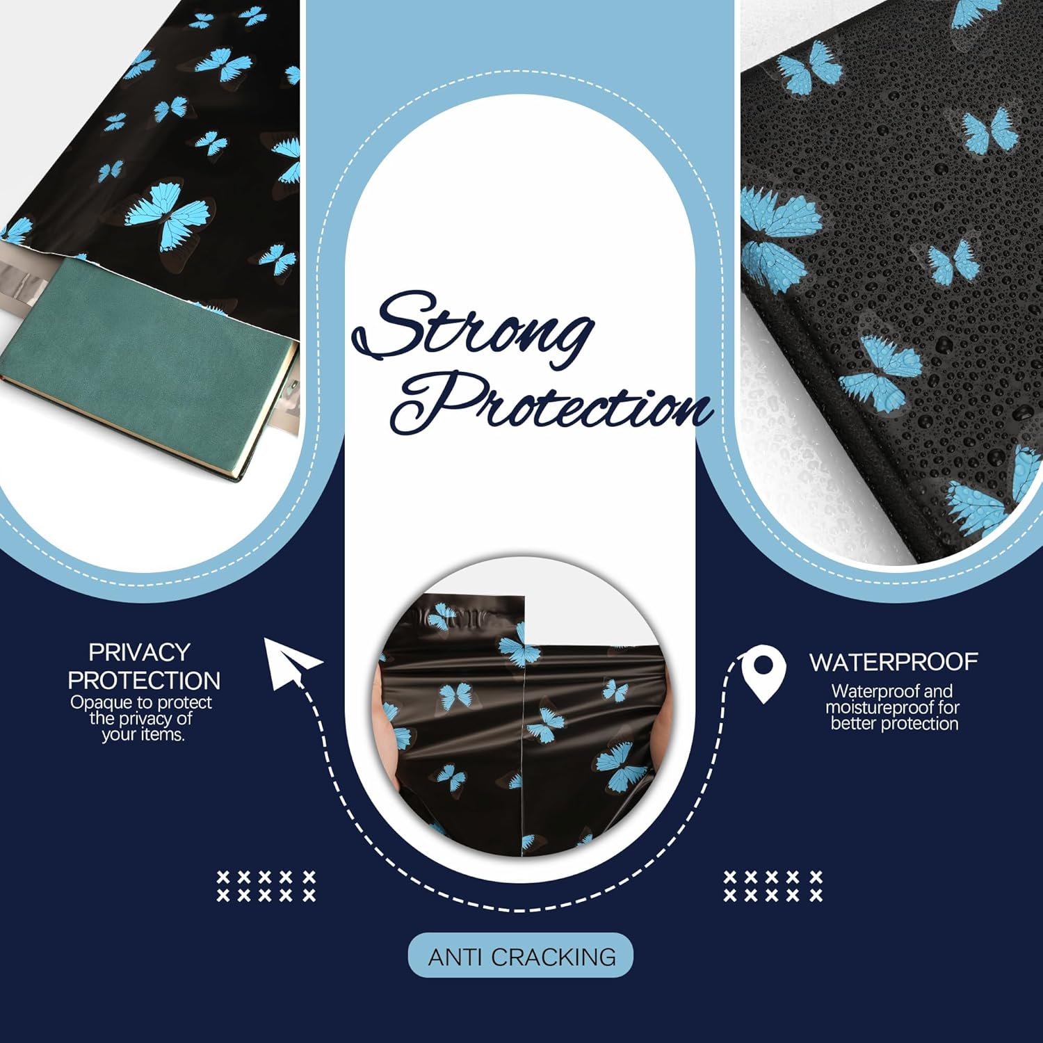 butterfly Poly Mailer 12x15.5 Inch 50 Pcs, Waterproof Shipping Bags for Clothing, Tear-Resistant Mailier Bags, Strong Mailing Bags with Self-Seal