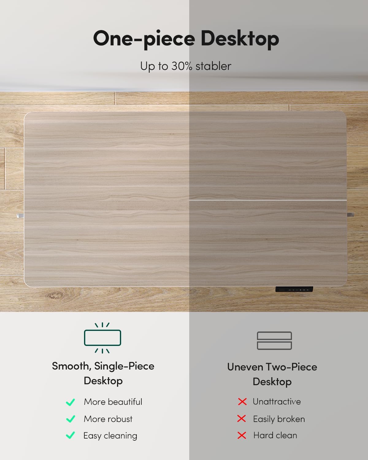 - Simplified Assembly: The Fezibo electric sit-stand desk includes detailed instructions for streamlined installation. One-piece desktop requires less steps than joined desktops to save time and effort. Please contact our support team if you have questions about assembly or product selection.